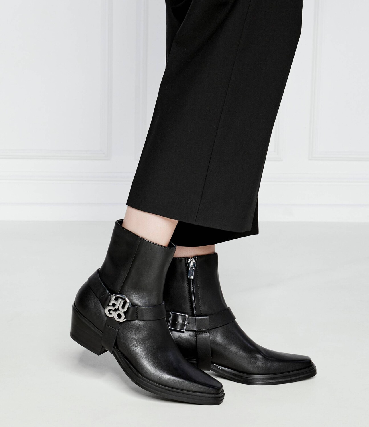 Ботинки женские HUGO с острым носком, черный