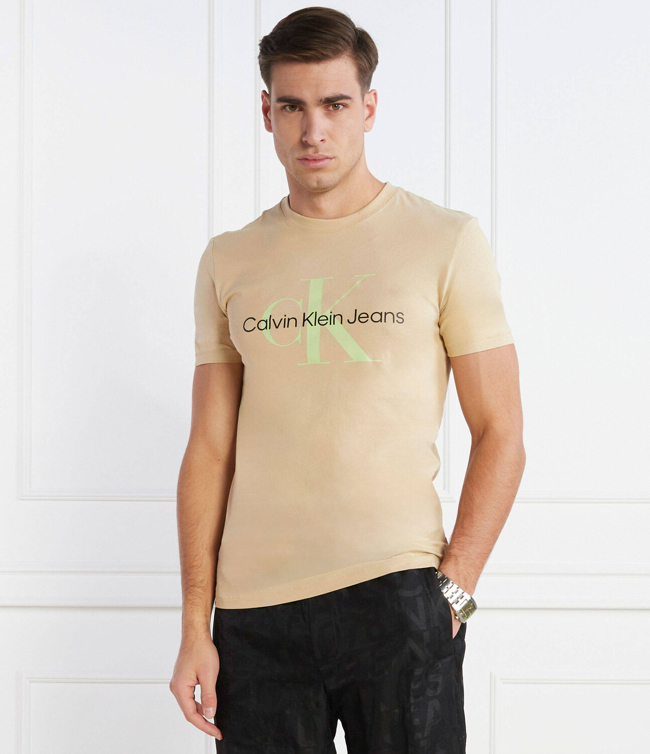 Футболка CALVIN KLEIN JEANS Slim Fit, бежевый