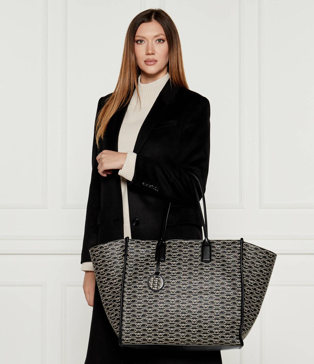 Сумка-шоппер Emporio Armani из экокожи с принтом, черно-белый