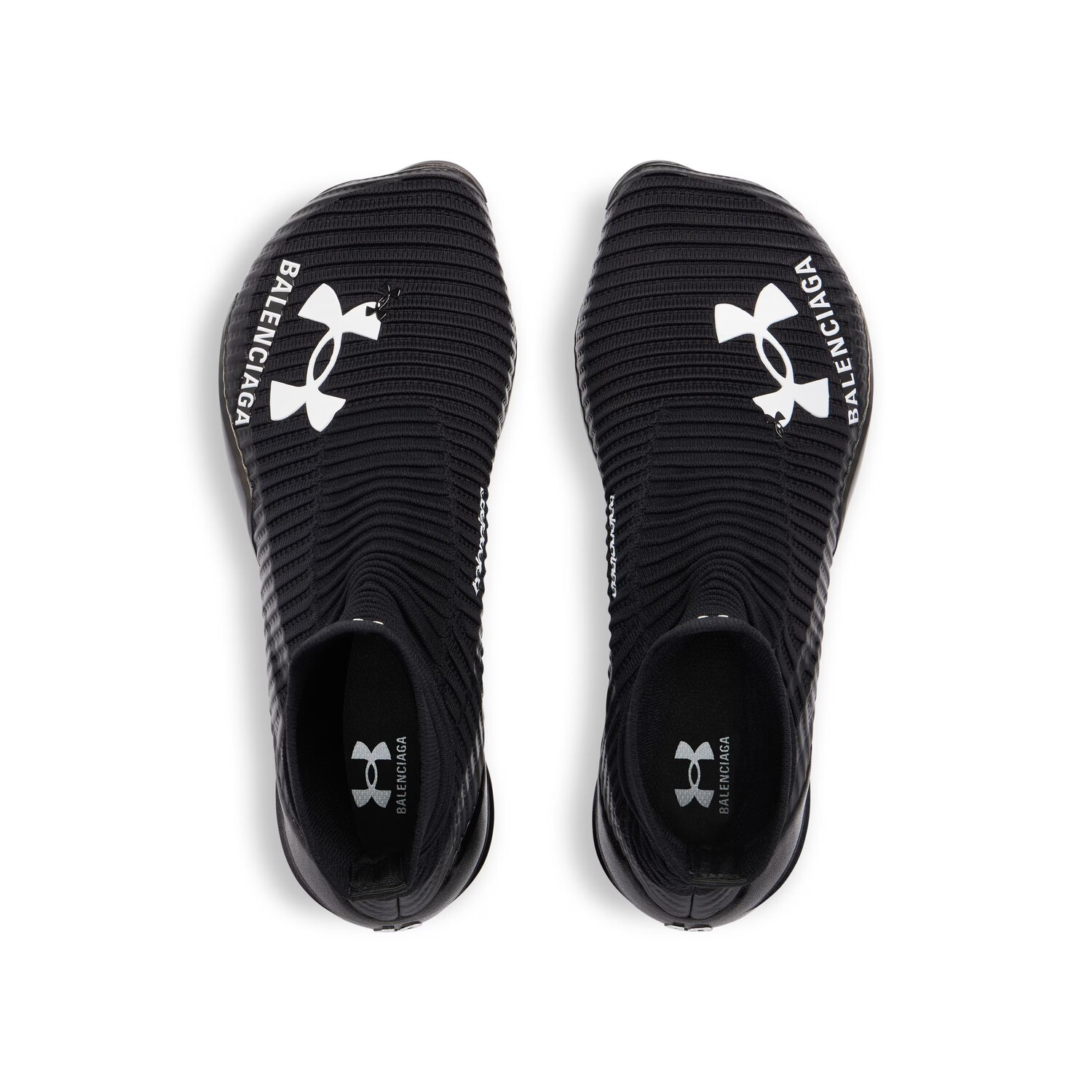 Кроссовки Under Armour Hyper Sneaker из черно-белого трикотажа представлены в образе 17 из коллекции Balenciaga Spring 25.