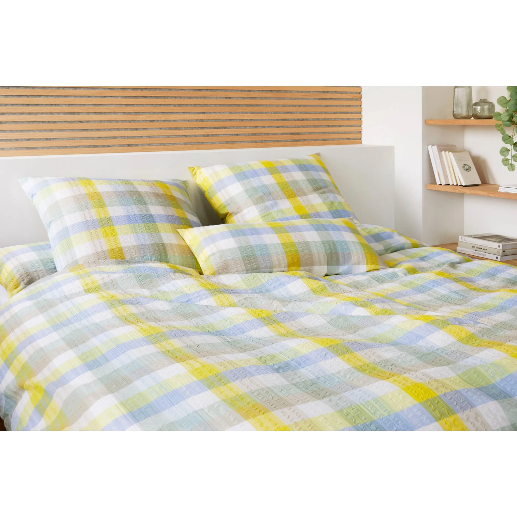 Изысканный клетчатый узор характеризует высококачественное постельное белье из хлопка AARHUS. Этот дизайн доступен в трех актуальных цветовых сочетаниях. Простота ухода делает это изделие из 100% хлопка особенно привлекательным. Сирсакер описывает эффект крепирования постельного белья, не требующего утюга. Эффект крепа сохраняется даже после многочисленных стирок.