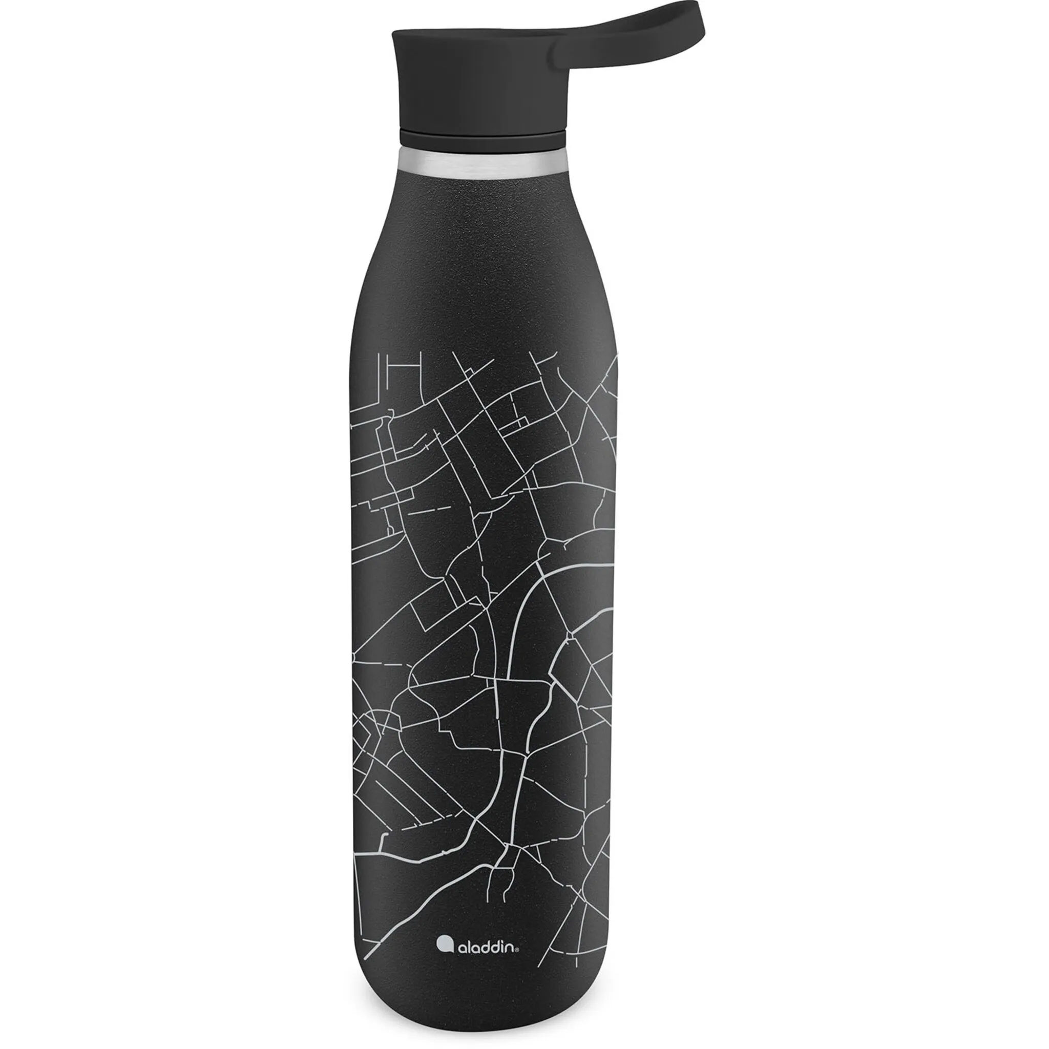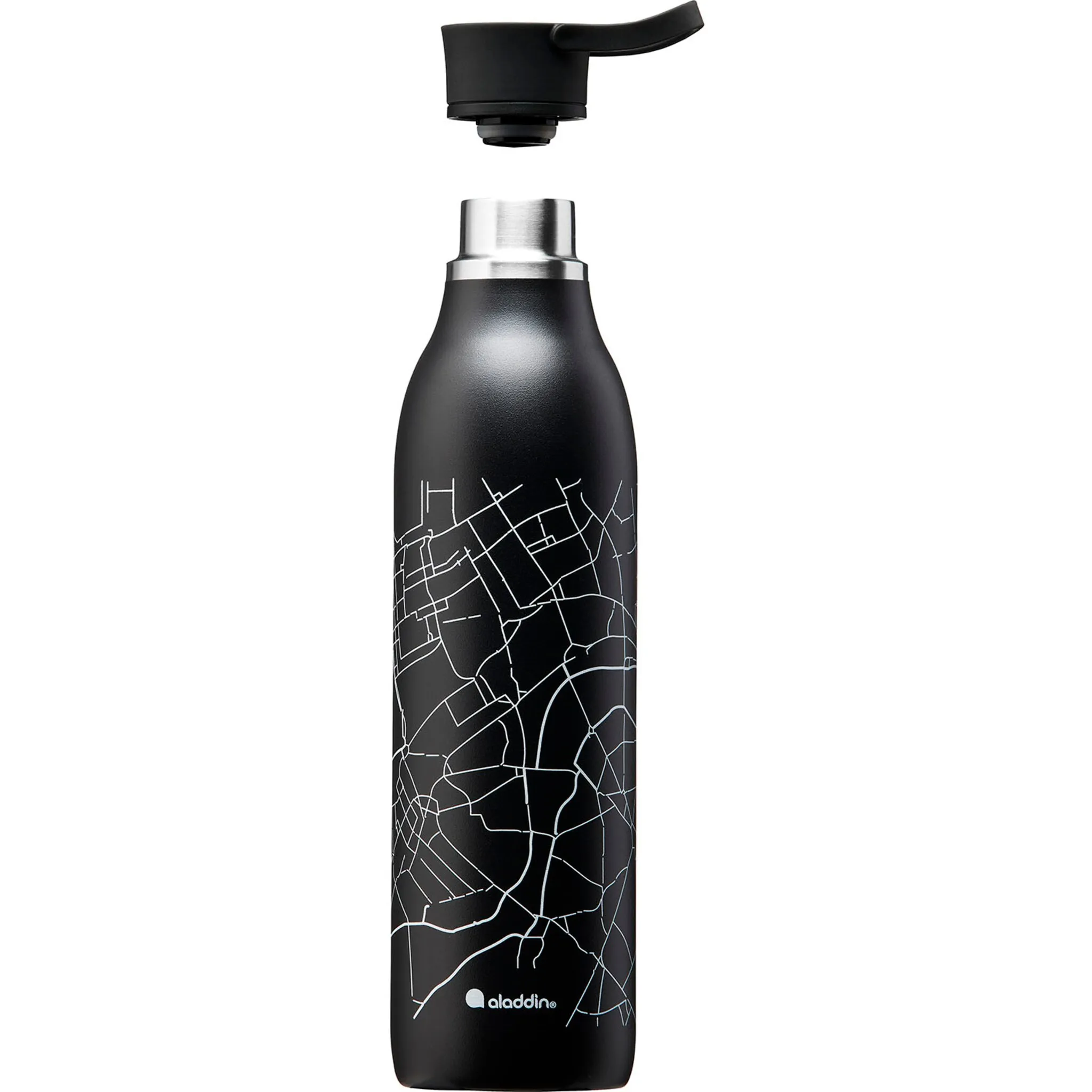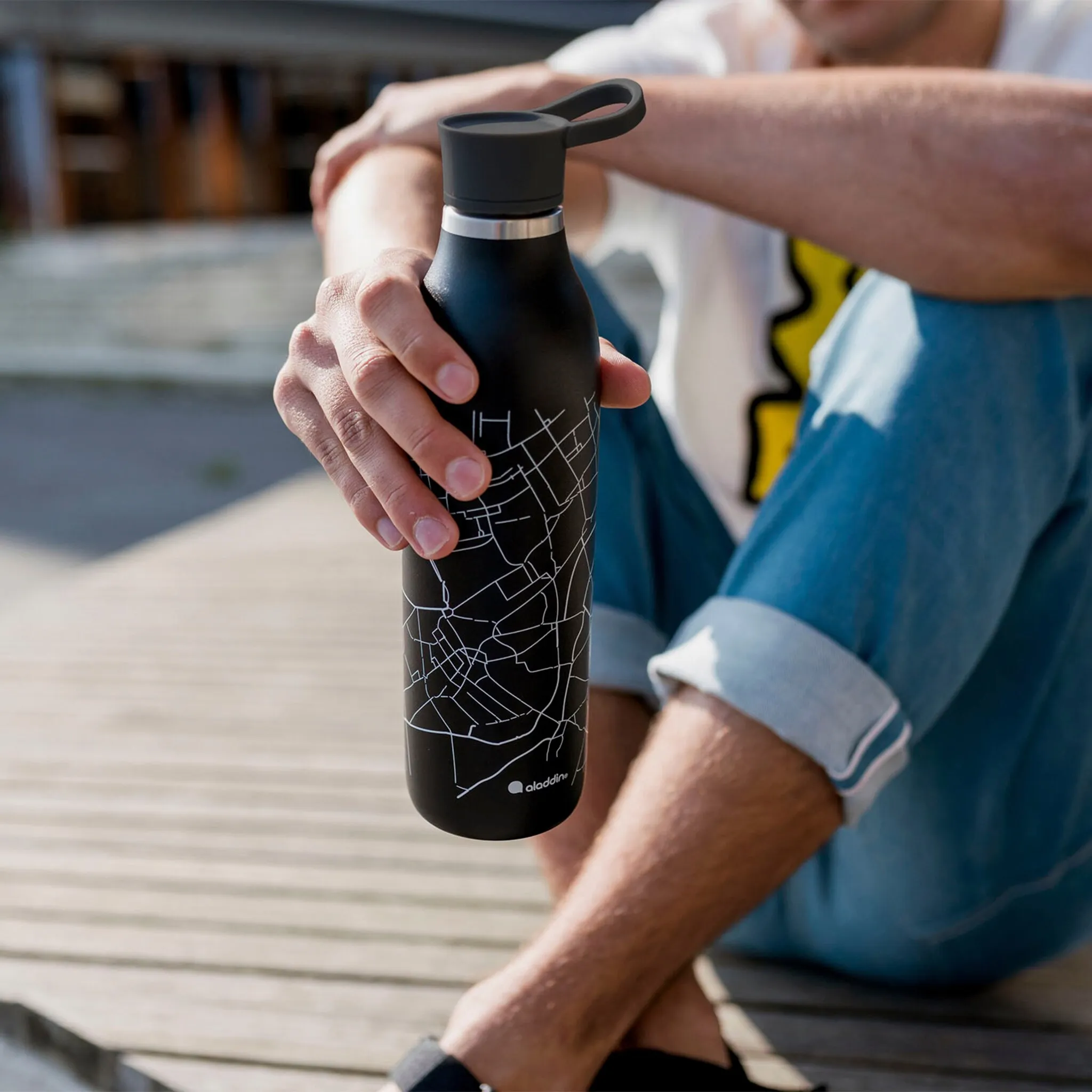Настоящей инновацией является изолированная бутылка Aladdin CityLoop, изготовленная из переработанной нержавеющей стали eCycle, емкостью 0,6 литра. Особым очарованием является шикарный дизайн, выполненный из экологически чистого материала eCycle. Специально разработанный. Инновационная вакуумная изоляция сохранит ваши напитки холодными до 12 часов. Нескользящее, чрезвычайно прочное порошковое покрытие обеспечивает удобный захват, а гибкая петля для пальца, встроенная в крышку, превращает бутылки для питья в стильные изделия, которые можно брать с собой. Изолированные бутылки на 90 % изготовлены из сертифицированной и безопасной для пищевых продуктов переработанной нержавеющей стали.