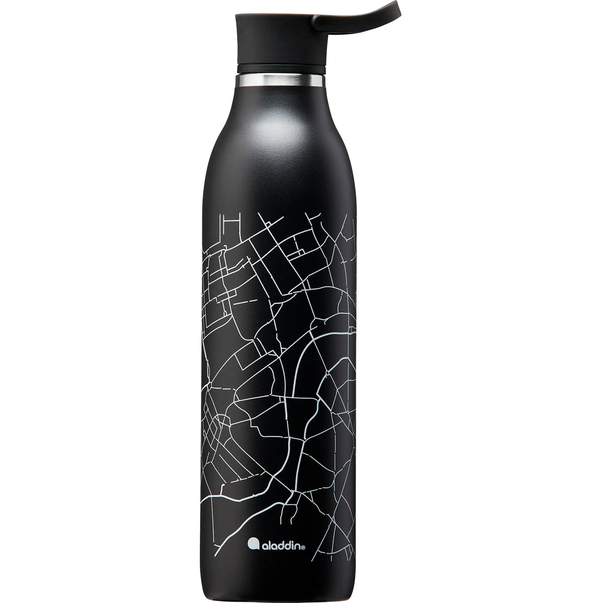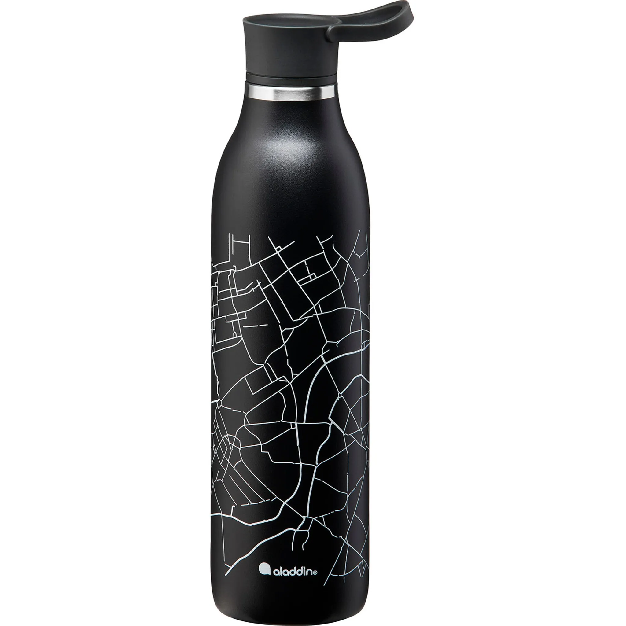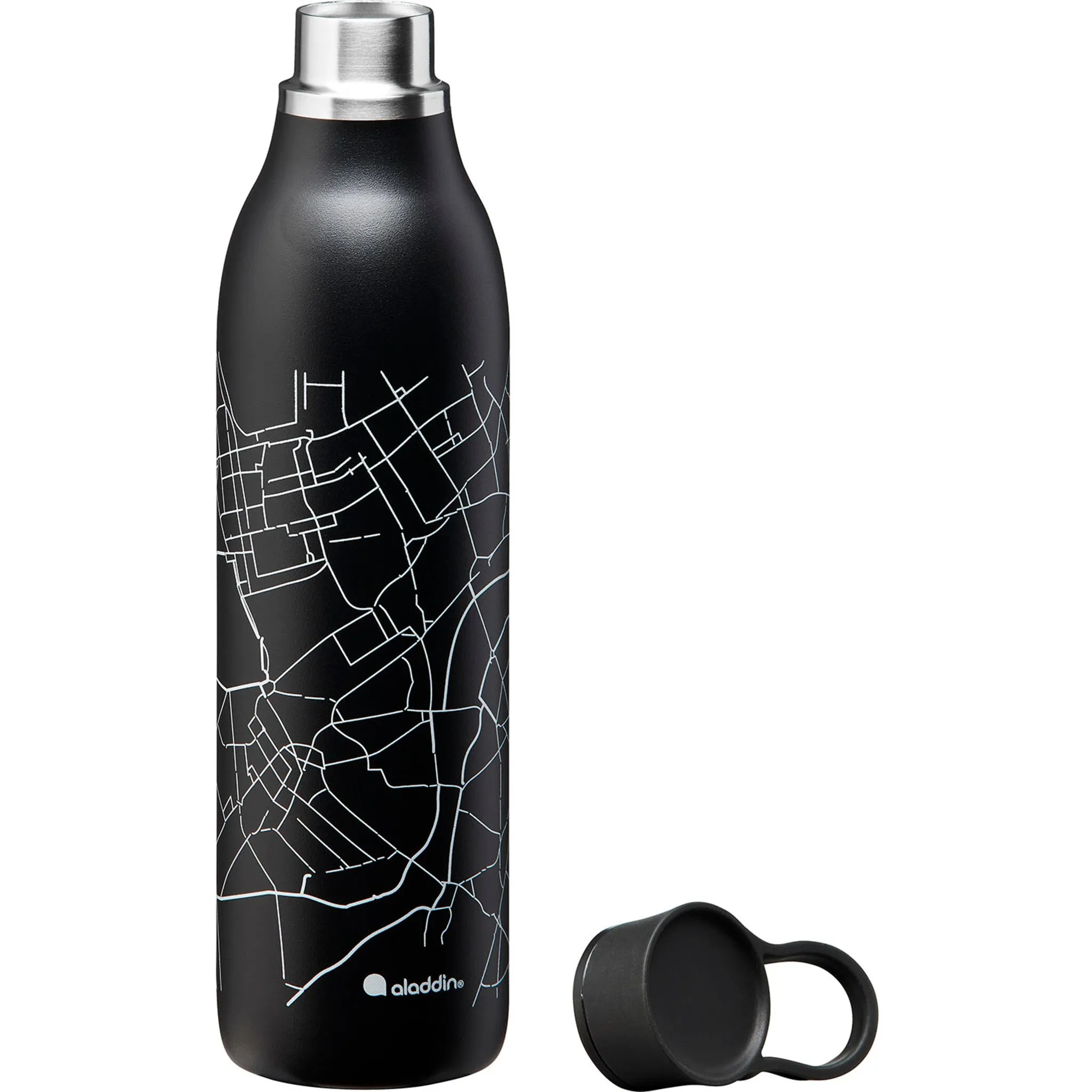 Настоящей инновацией является изолированная бутылка Aladdin CityLoop, изготовленная из переработанной нержавеющей стали eCycle, емкостью 0,6 литра. Особым очарованием является шикарный дизайн, выполненный из экологически чистого материала eCycle. Специально разработанный. Инновационная вакуумная изоляция сохранит ваши напитки холодными до 12 часов. Нескользящее, чрезвычайно прочное порошковое покрытие обеспечивает удобный захват, а гибкая петля для пальца, встроенная в крышку, превращает бутылки для питья в стильные изделия, которые можно брать с собой. Изолированные бутылки на 90 % изготовлены из сертифицированной и безопасной для пищевых продуктов переработанной нержавеющей стали.