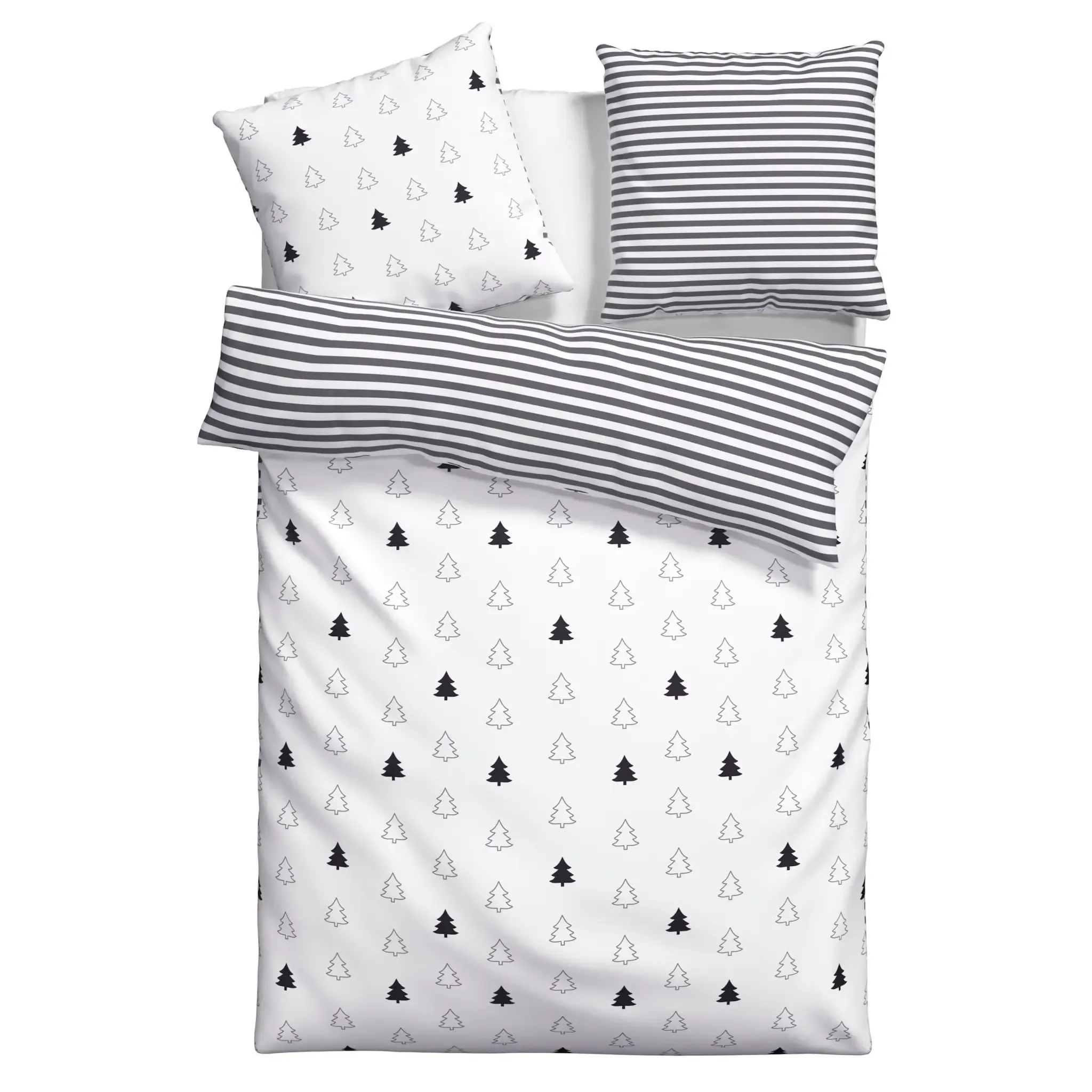 Двустороннее постельное белье с принтом «Джули» от andas станет декоративным украшением вашей спальни. Его дизайн определяется красивыми мотивами рождественской елки спереди и тонким полосатым узором на двусторонней стороне. Этот комплект постельного белья с привлекательным дизайном и приятным для кожи мягким чехлом обеспечит приятный комфорт для уютных ночей. Благодаря функциональной молнии его можно быстро и легко снять и надеть. Для очистки положите хлопковое постельное белье в стиральную машину при температуре 60°C. Придает вашему интерьеру декоративный вид: двустороннее постельное белье с принтом «Джули» от andas.