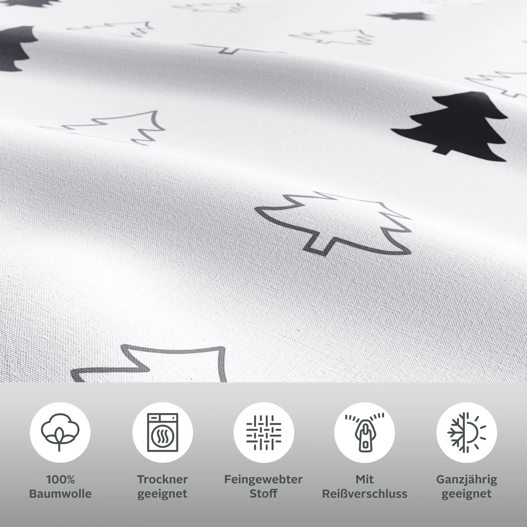 Двустороннее постельное белье с принтом «Джули» от andas станет декоративным украшением вашей спальни. Его дизайн определяется красивыми мотивами рождественской елки спереди и тонким полосатым узором на двусторонней стороне. Этот комплект постельного белья с привлекательным дизайном и приятным для кожи мягким чехлом обеспечит приятный комфорт для уютных ночей. Благодаря функциональной молнии его можно быстро и легко снять и надеть. Для очистки положите хлопковое постельное белье в стиральную машину при температуре 60°C. Придает вашему интерьеру декоративный вид: двустороннее постельное белье с принтом «Джули» от andas.