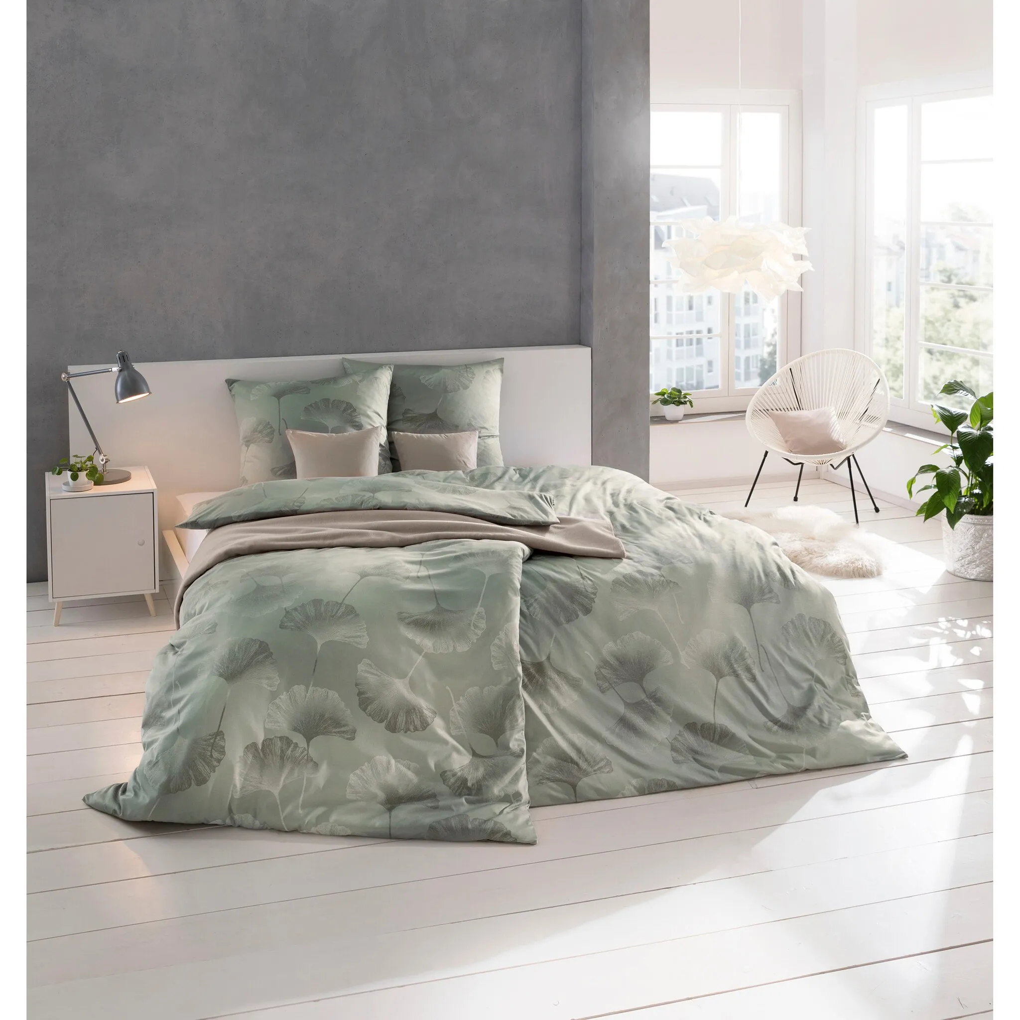 Постельное белье из линейки ESTELLA ATELIER отличается изысканным дизайном и гармоничной игрой цветов. «ИЗАБЕЛЛА» — это элегантный современный дизайн с тонко прорисованным листом гинкго. Комплекты постельного белья, изготовленные из негладкого трикотажа интерлок Mako из чистого хлопка, обеспечивают шелковисто-мягкий и уютный сон во всех отношениях. Наволочку и пододеяльник можно быстро заменить с помощью практичной молнии. За материалом особенно легко ухаживать, его можно стирать при температуре 60 градусов, его нельзя гладить и сушить в стиральной машине. Идеальное четырехсезонное постельное белье.