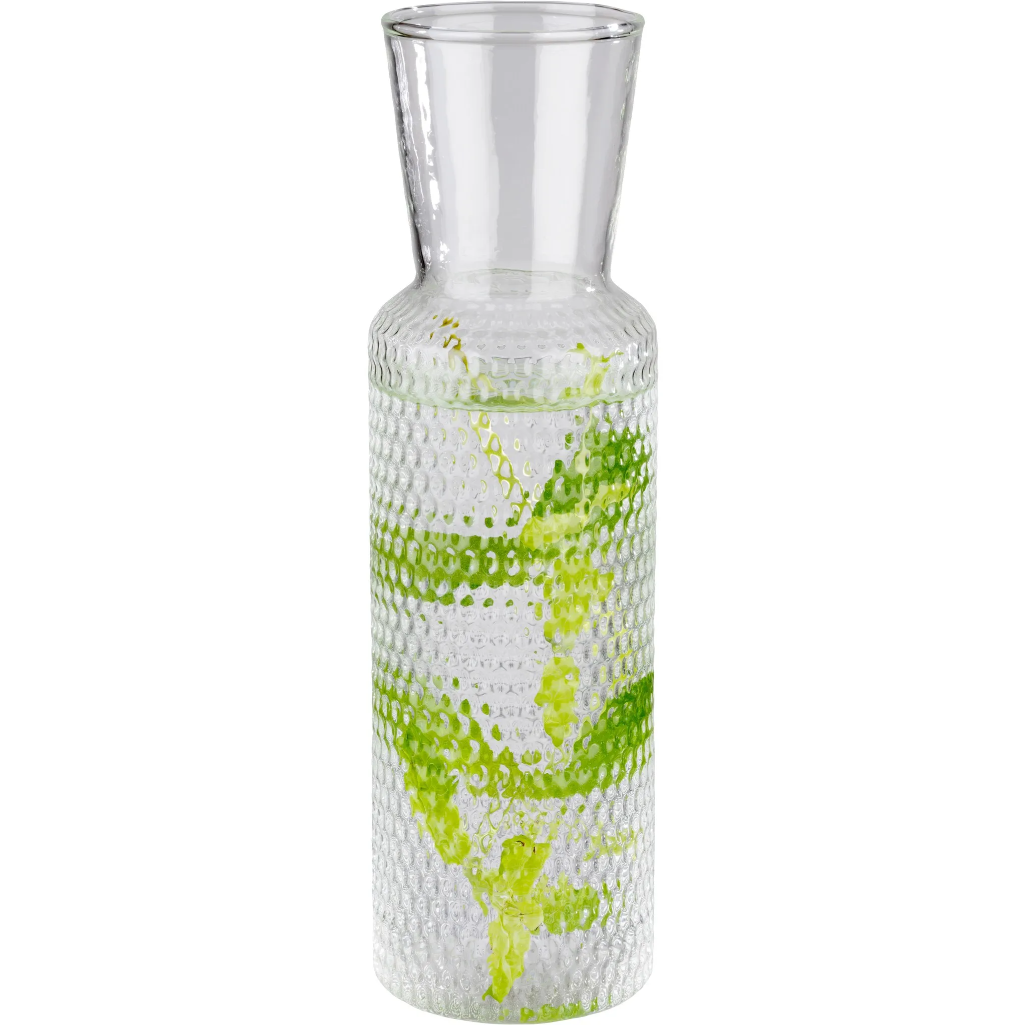 Этот стеклянный графин, украшенный точечными аппликациями, станет изюминкой любого стола. Напитки представлены и подаются в привлекательной манере.