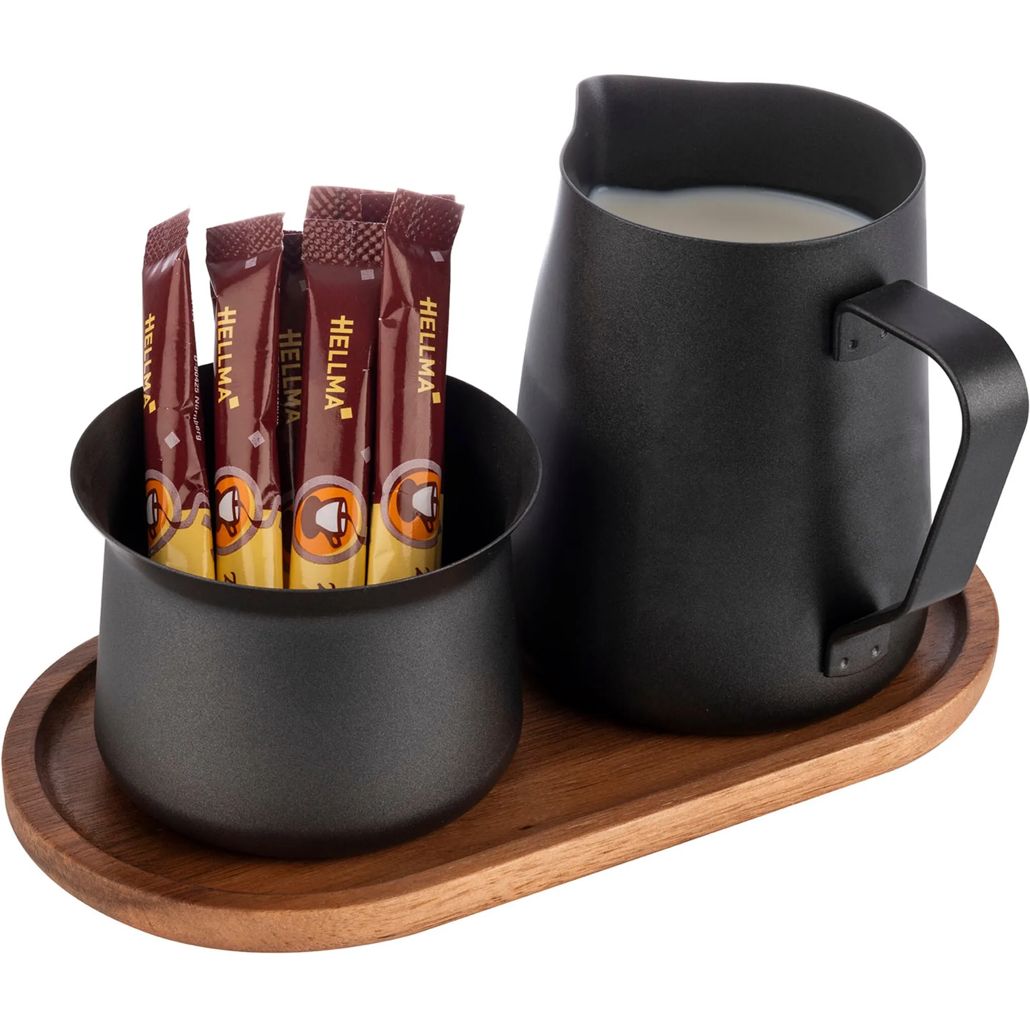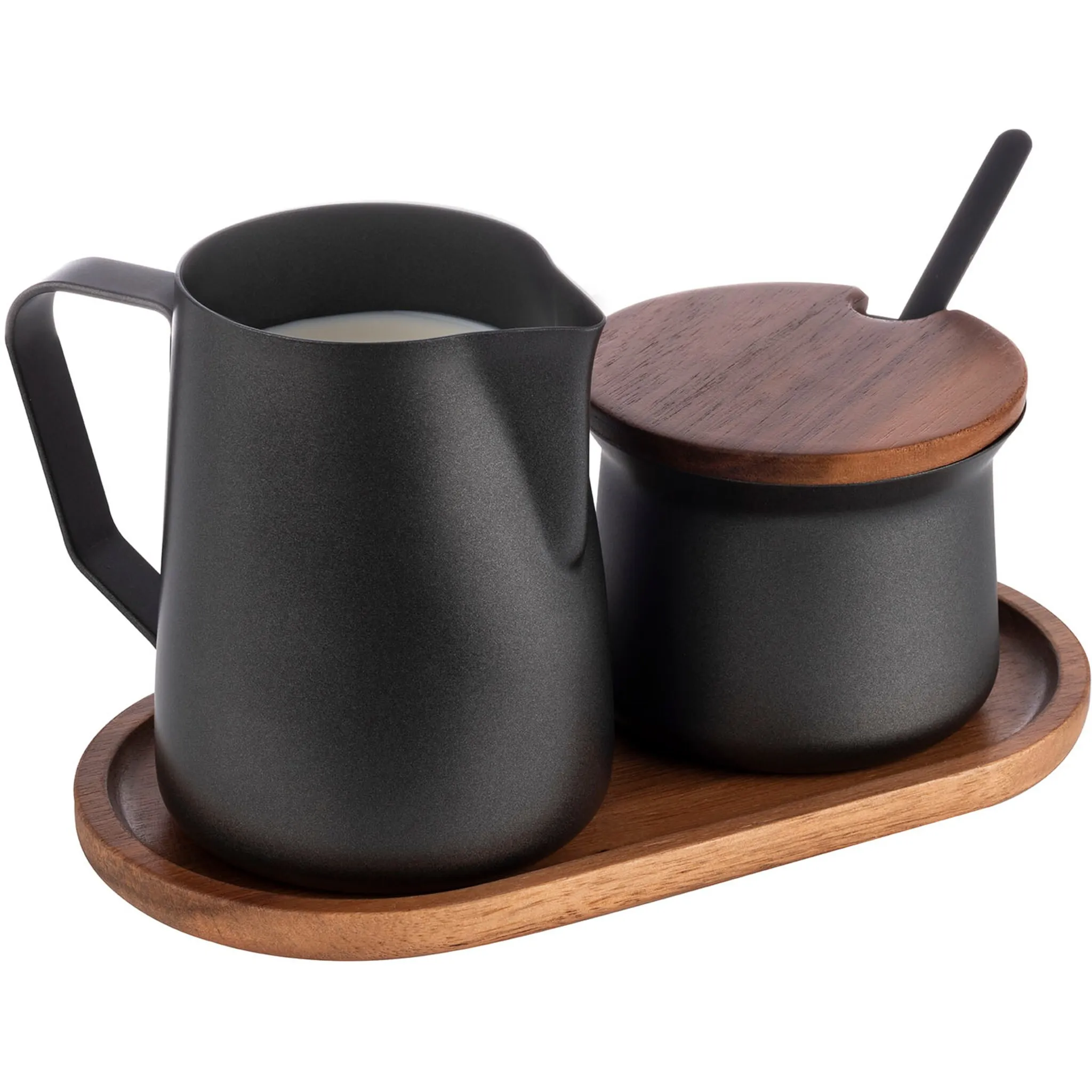 >Этот элегантный набор из акации и нержавеющей стали идеально подойдет для любого журнального столика или стола для завтрака. Современный и простой дизайн идеально впишется в любой интерьер и привлечет внимание. Сахар можно гигиенично удалить из банки с помощью ложки из нержавеющей стали, которая входит в комплект поставки. Благодаря крышке из акации сахар прекрасно защищен от внешних воздействий, а ложка находит свое место благодаря выемке для ложки. Молочник и сахарница вместе занимают свое место на подносе из акации и образуют гармоничную общую картину.