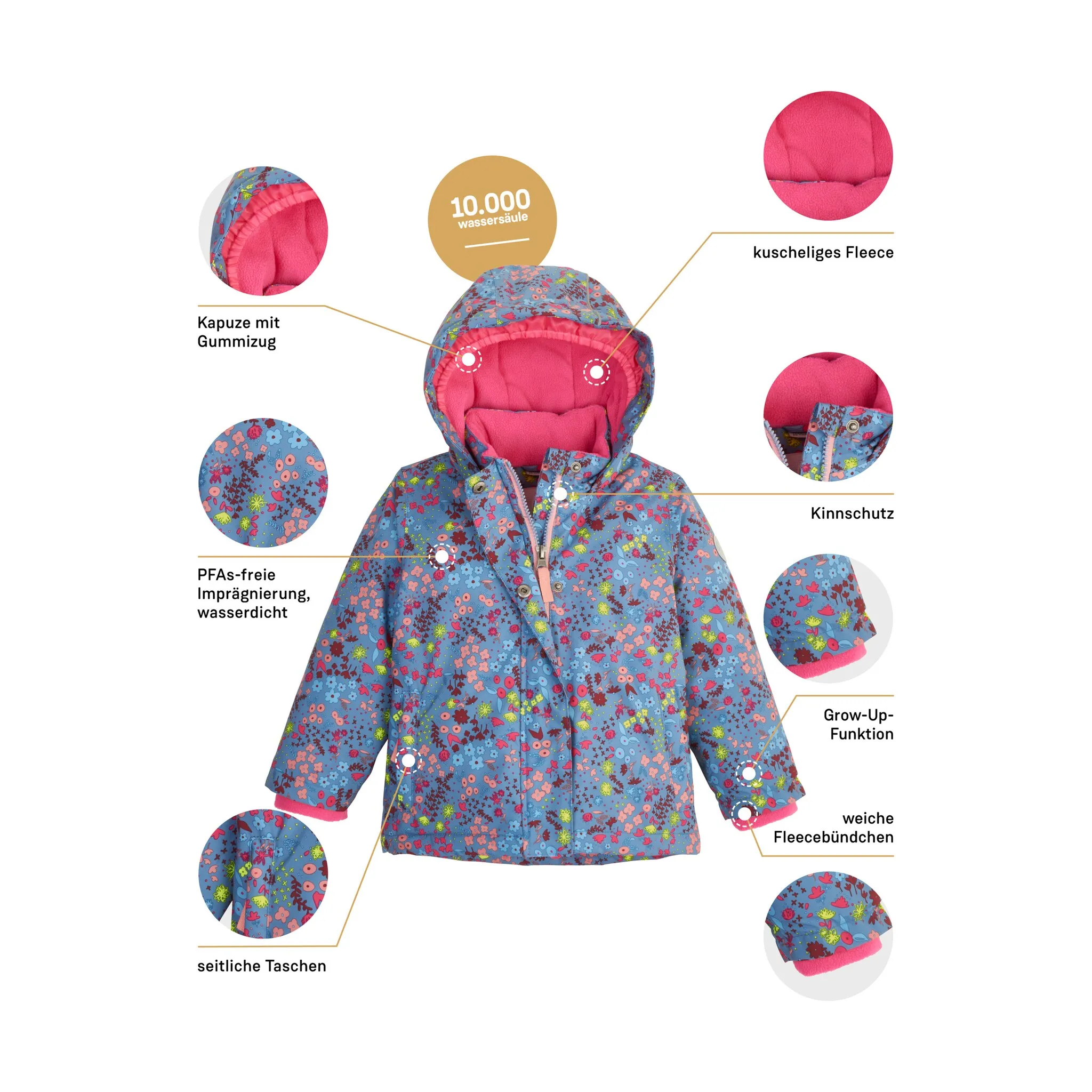 Функциональная куртка для малышей с капюшоном. Водяной столб 10 000 мм, швы проклеены, водонепроницаемость. Функция взросления Молния с клапаном и защитой подбородка. Гидроизоляция без ПФА, полезна для вас и окружающей среды