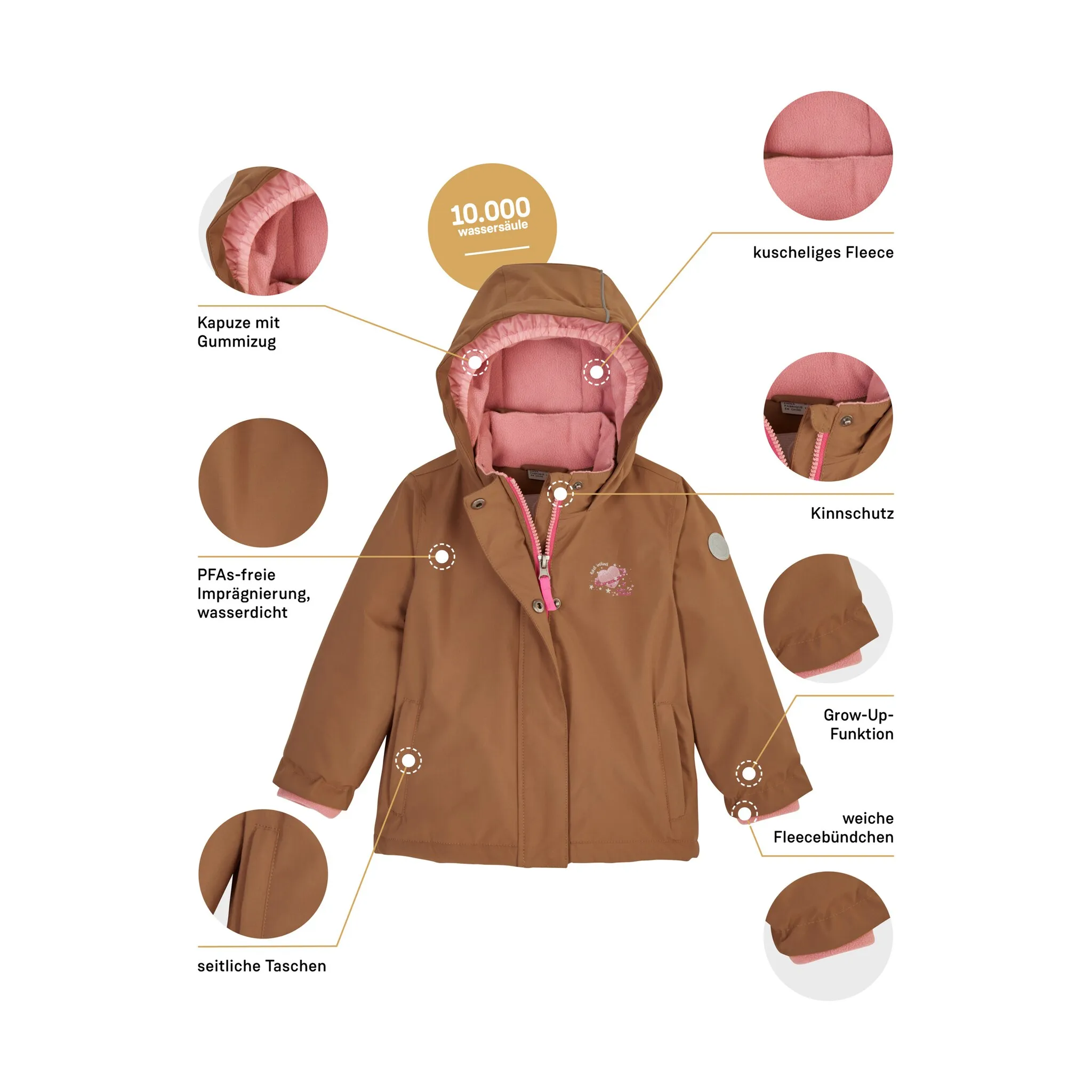 Функциональная куртка для малышей с капюшоном. Водяной столб 10 000 мм, швы проклеены, водонепроницаемость. Функция взросления Молния с защитой подбородка Гидроизоляция без ПФА, полезна для вас и окружающей среды