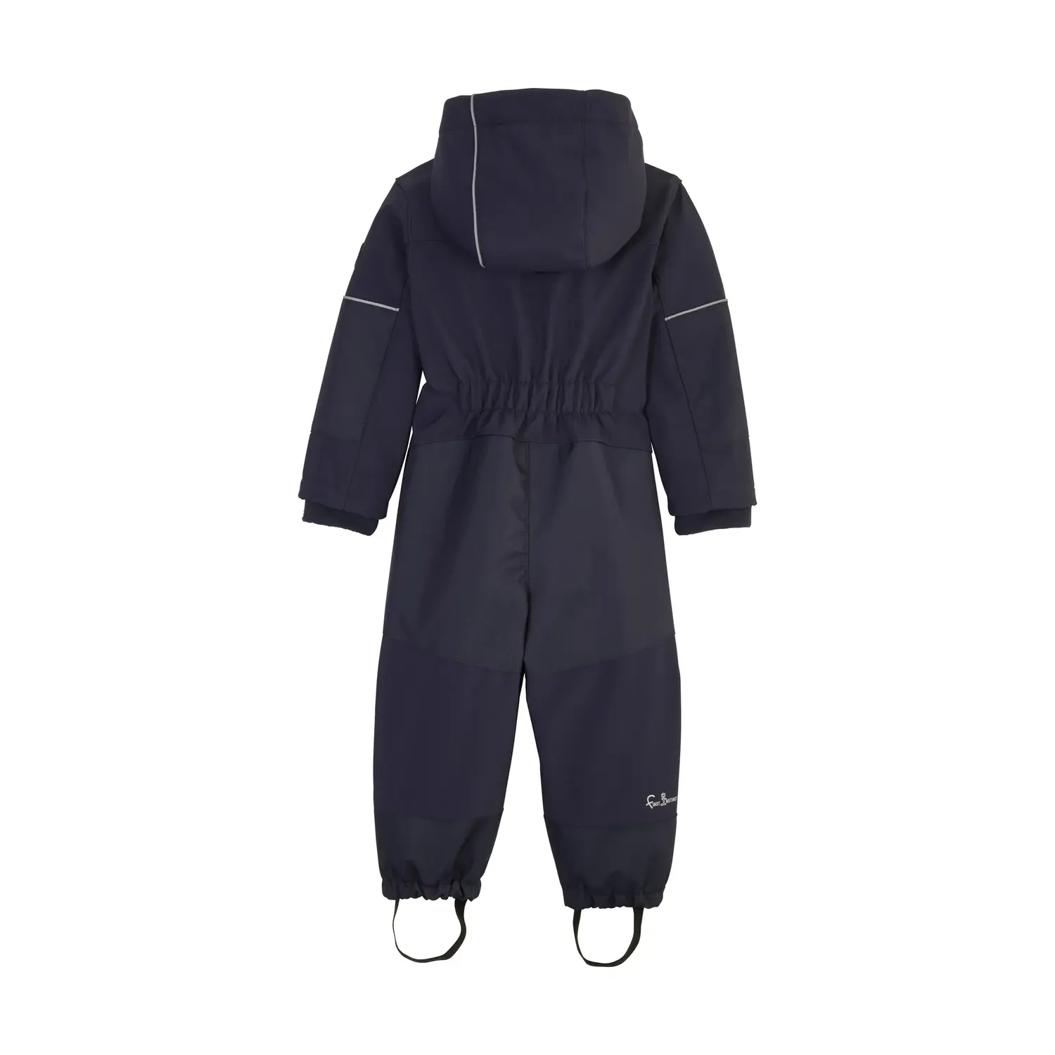 Комбинезон софтшелл для малышей с капюшоном Водяной столб 10 000 мм, водоотталкивающий, ветроотталкивающий эластичные манжеты, резиновые петли на концах штанин. Водоотводящая полоска на молнии. светоотражающие элементы