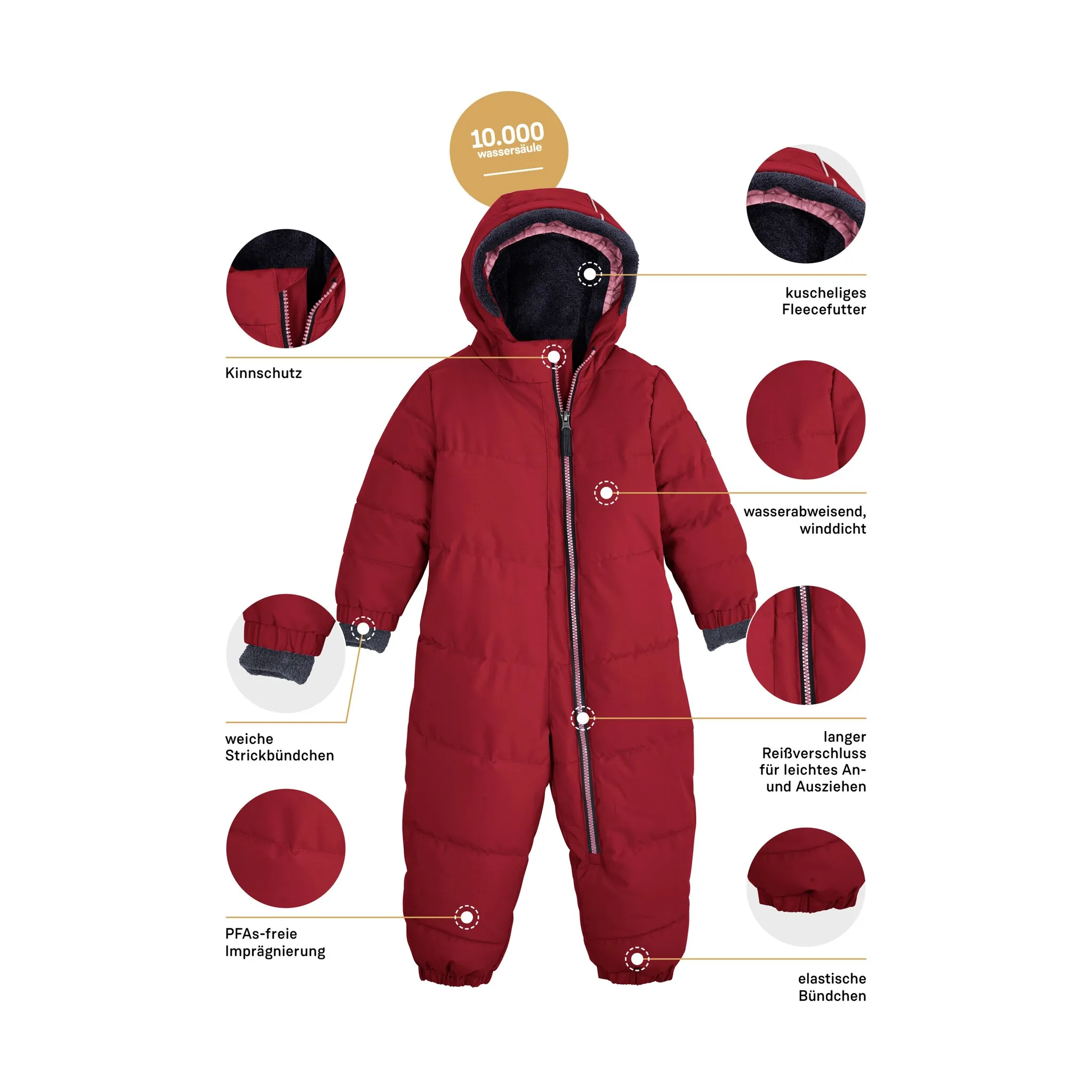 Стеганый комбинезон для малышей с капюшоном Водяной столб 10 000 мм, водоотталкивающий, ветрозащитный. эластичные манжеты на рукавах и манжетах на штанинах приятный плюшевый мех, толстый наполнитель Гидроизоляция без ПФА – польза для вас и окружающей среды