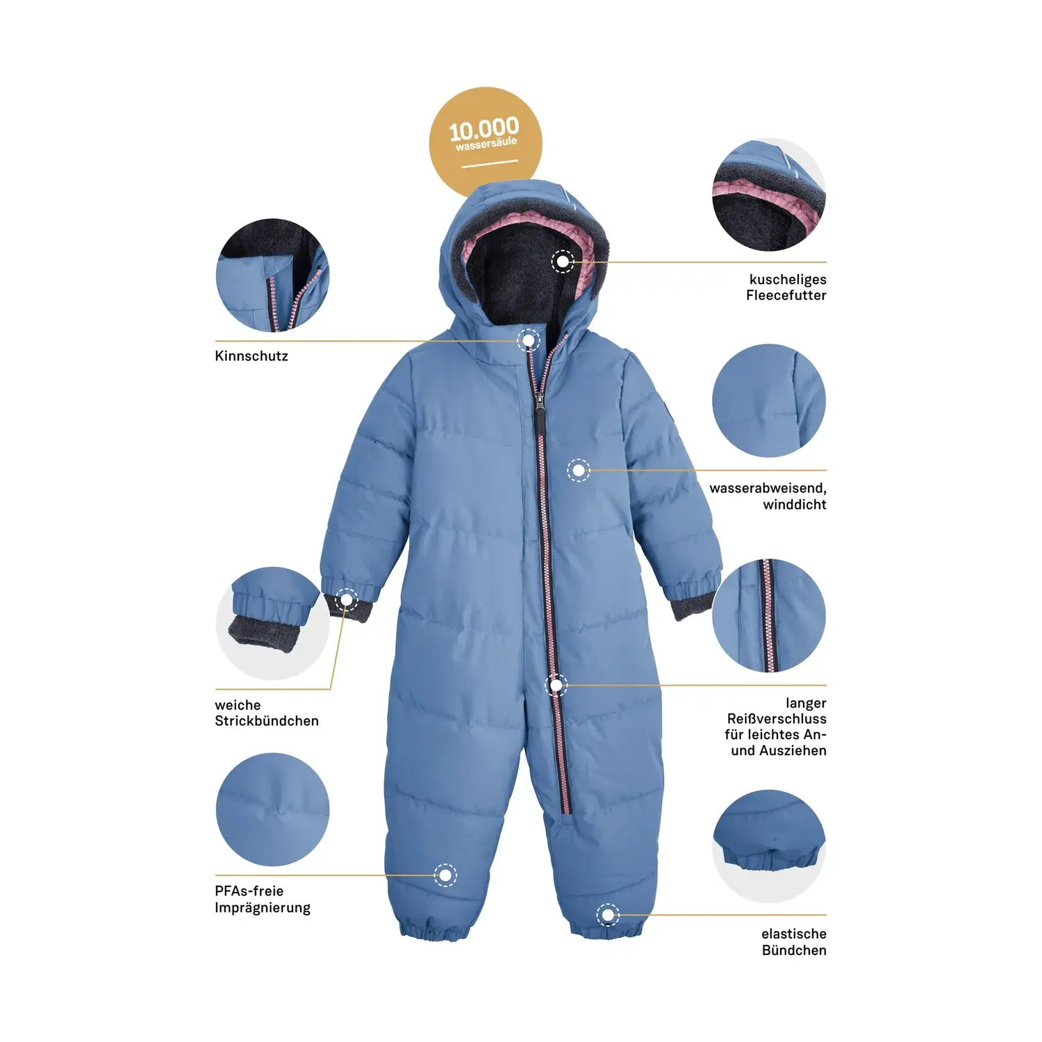 Стеганый комбинезон для малышей с капюшоном Водяной столб 10 000 мм, водоотталкивающий, ветрозащитный. эластичные манжеты на рукавах и манжетах на штанинах приятный плюшевый мех, толстый наполнитель Гидроизоляция без ПФА – польза для вас и окружающей среды