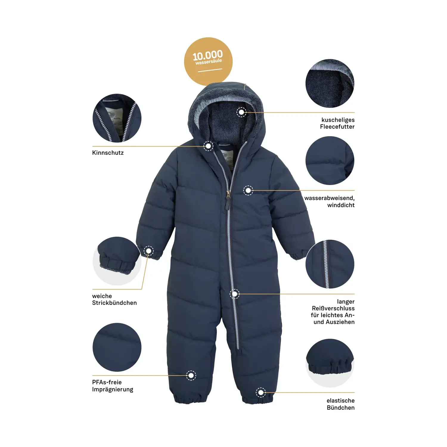Стеганый комбинезон для малышей с капюшоном Водяной столб 10 000 мм, водоотталкивающий, ветрозащитный. эластичные манжеты на рукавах и манжетах на штанинах приятный плюшевый мех, толстый наполнитель Гидроизоляция без ПФА – польза для вас и окружающей среды