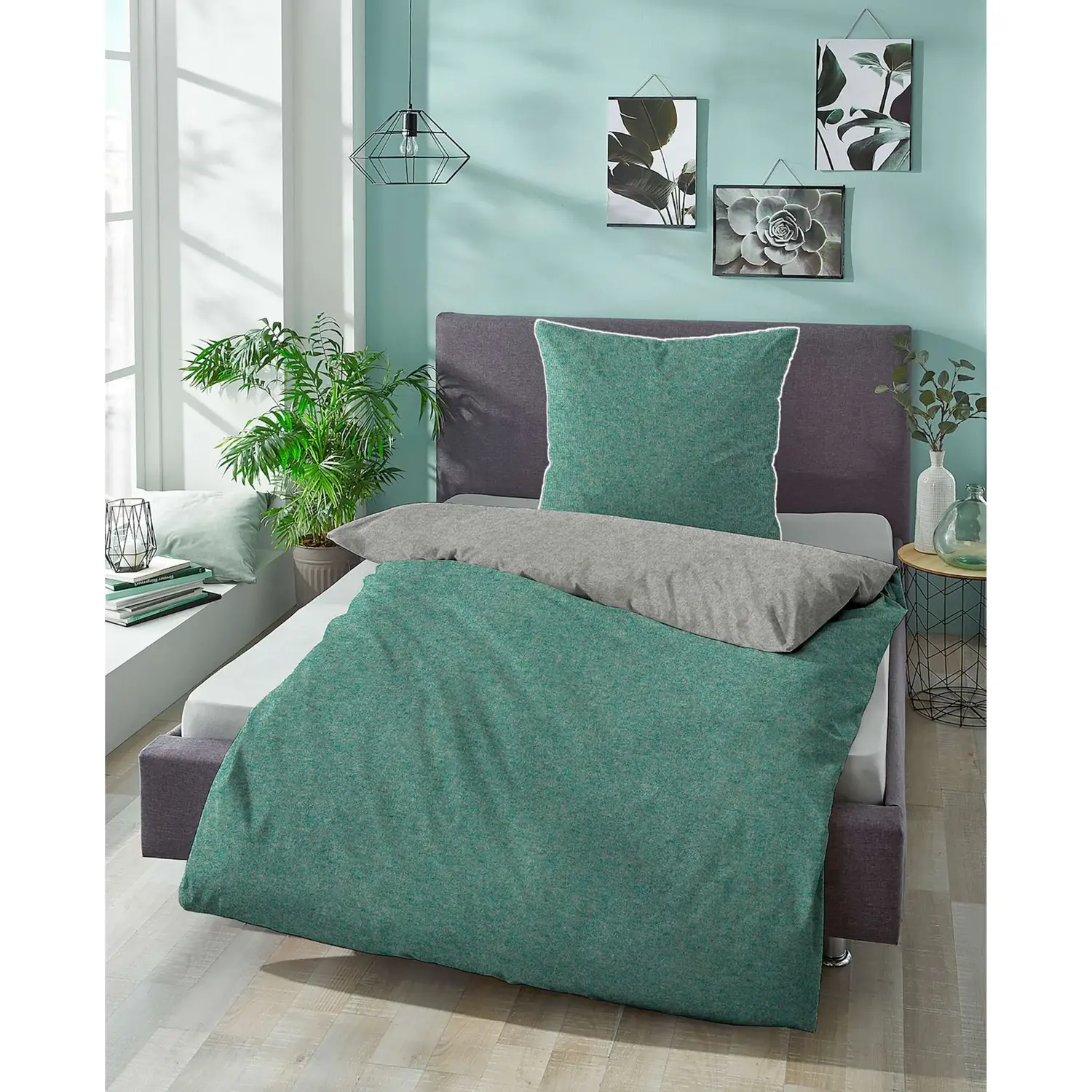 Постельное белье Biberna, (2 шт.), цвет salbei-grau-meliert