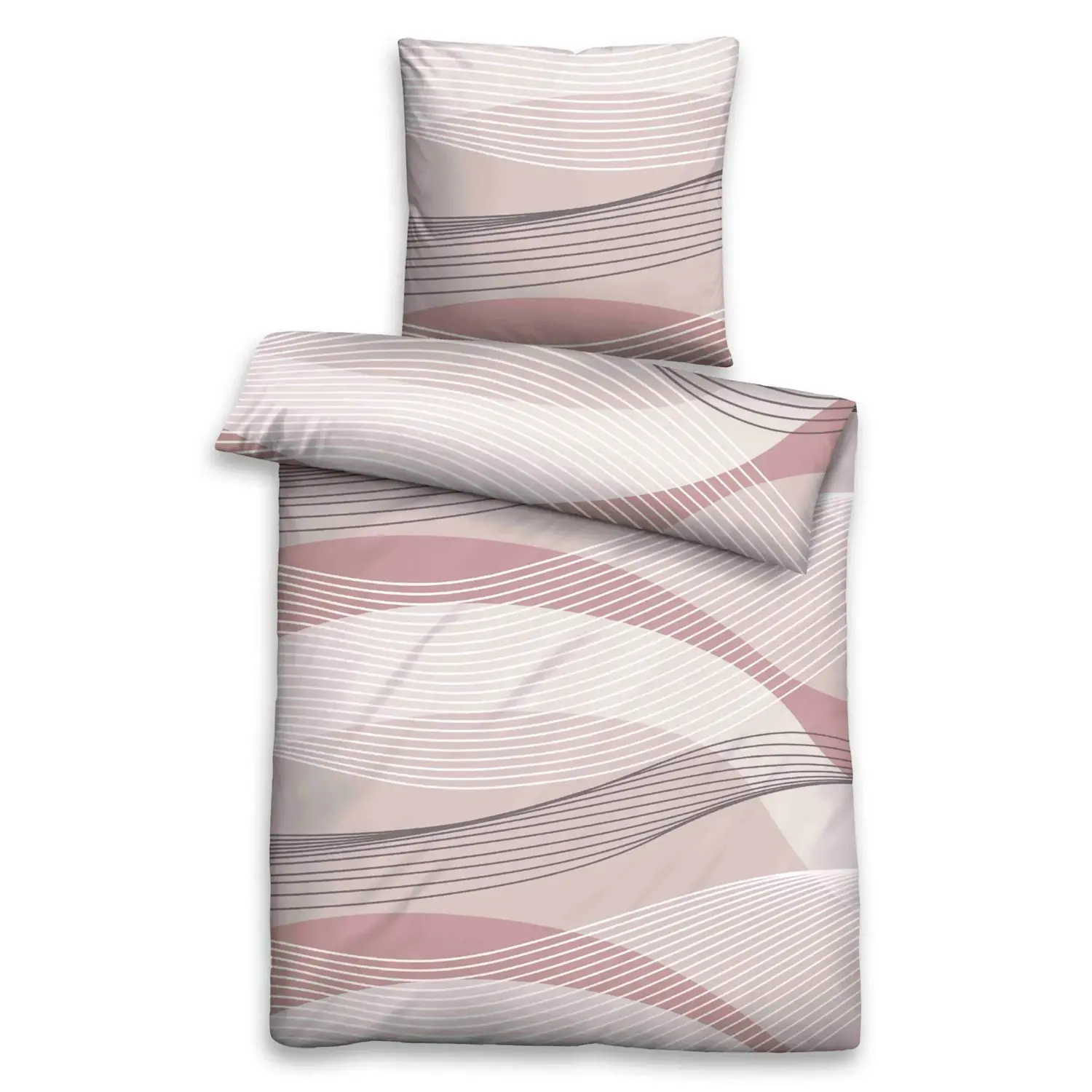 Нежный волнистый дизайн в нежных тонах обязательно впишется в вашу спальню: постельное белье популярного качества без глажки. С практичной молнией. В каждом комплекте вы получите наволочку 40х80 см! 100% хлопок.