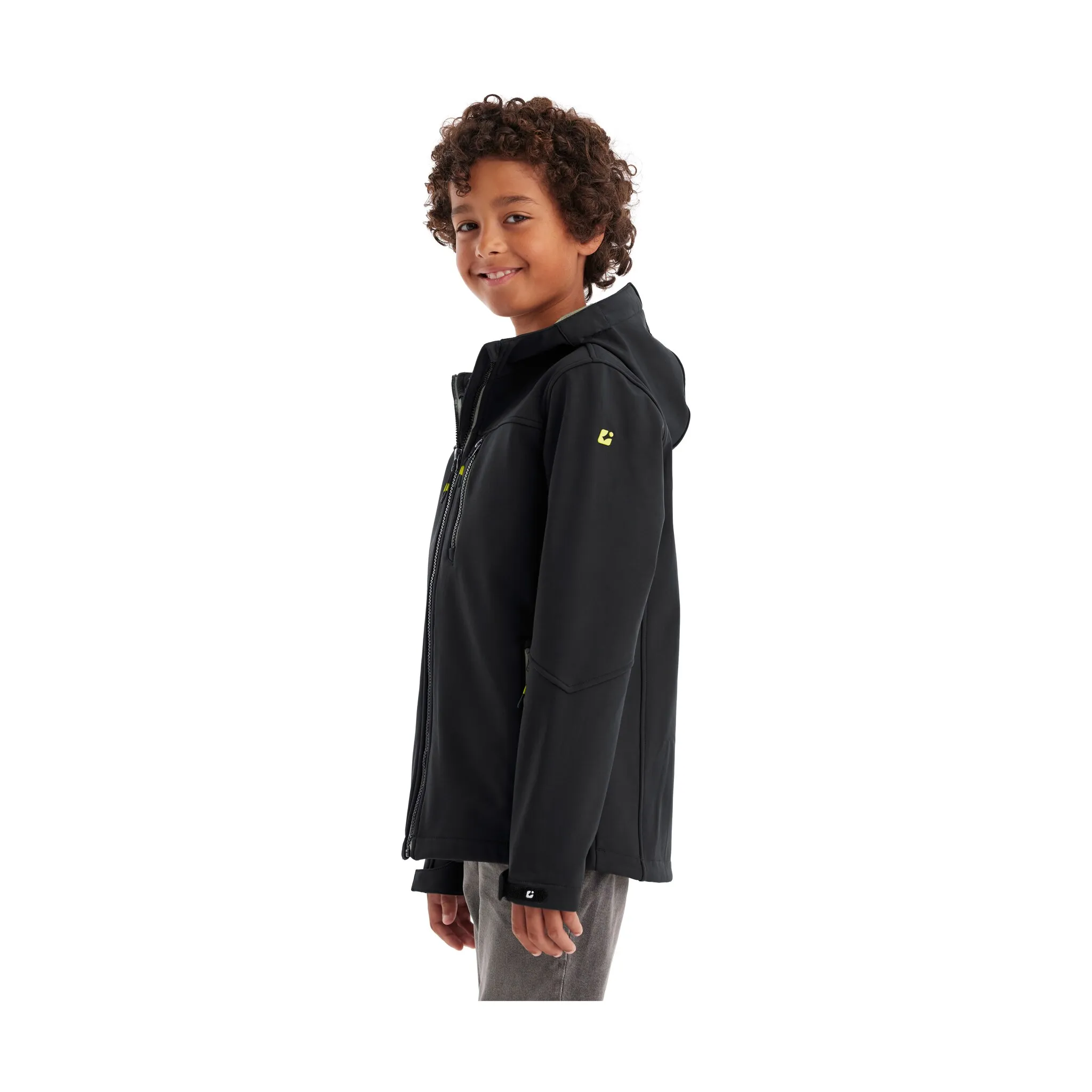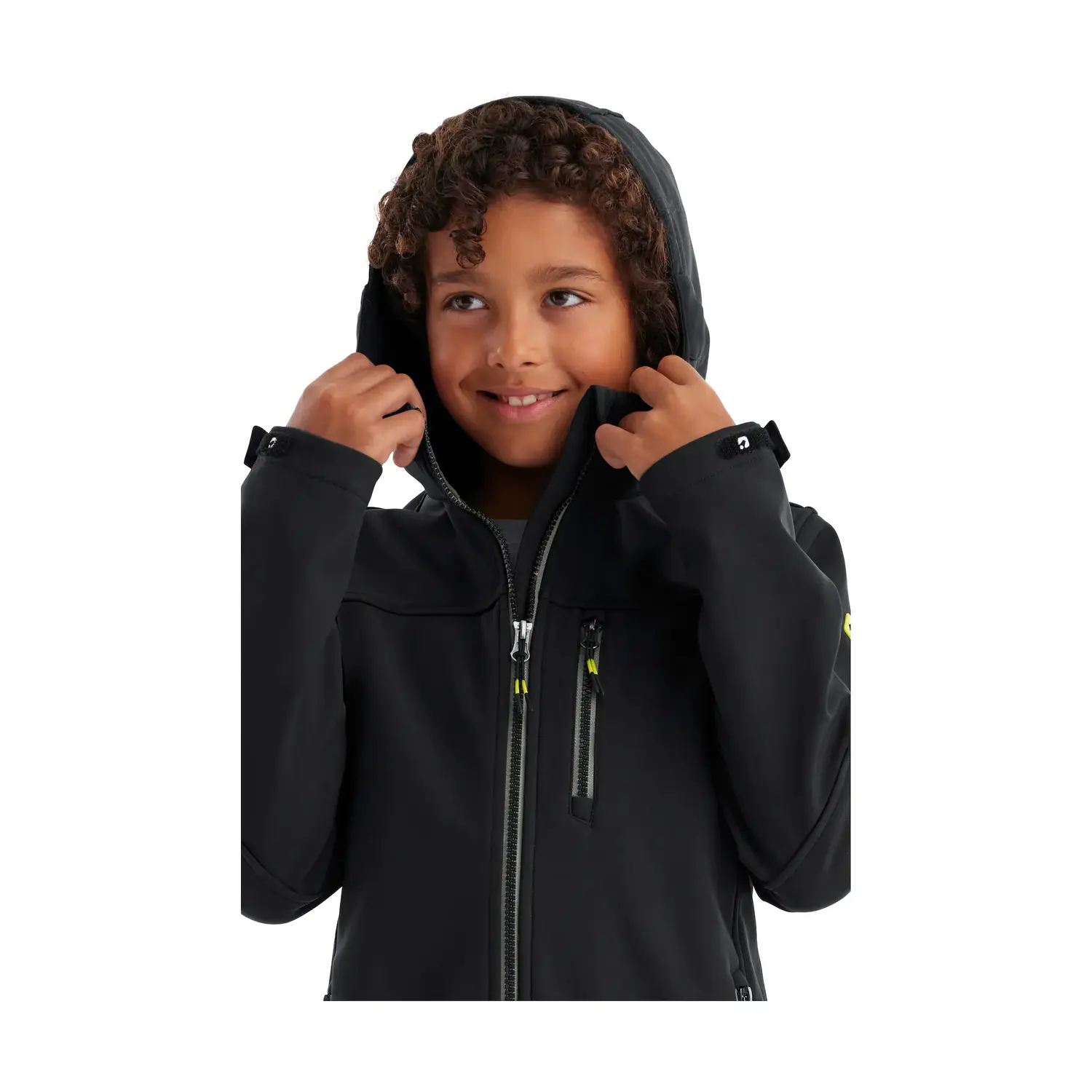 Куртка софтшелл для мальчика с капюшоном Водяной столб 10 000 мм, водоотталкивающий, ветроотталкивающий Внутри мягкий флис. регулируемые манжеты Гидроизоляция без ПФА, полезна для вас и окружающей среды
