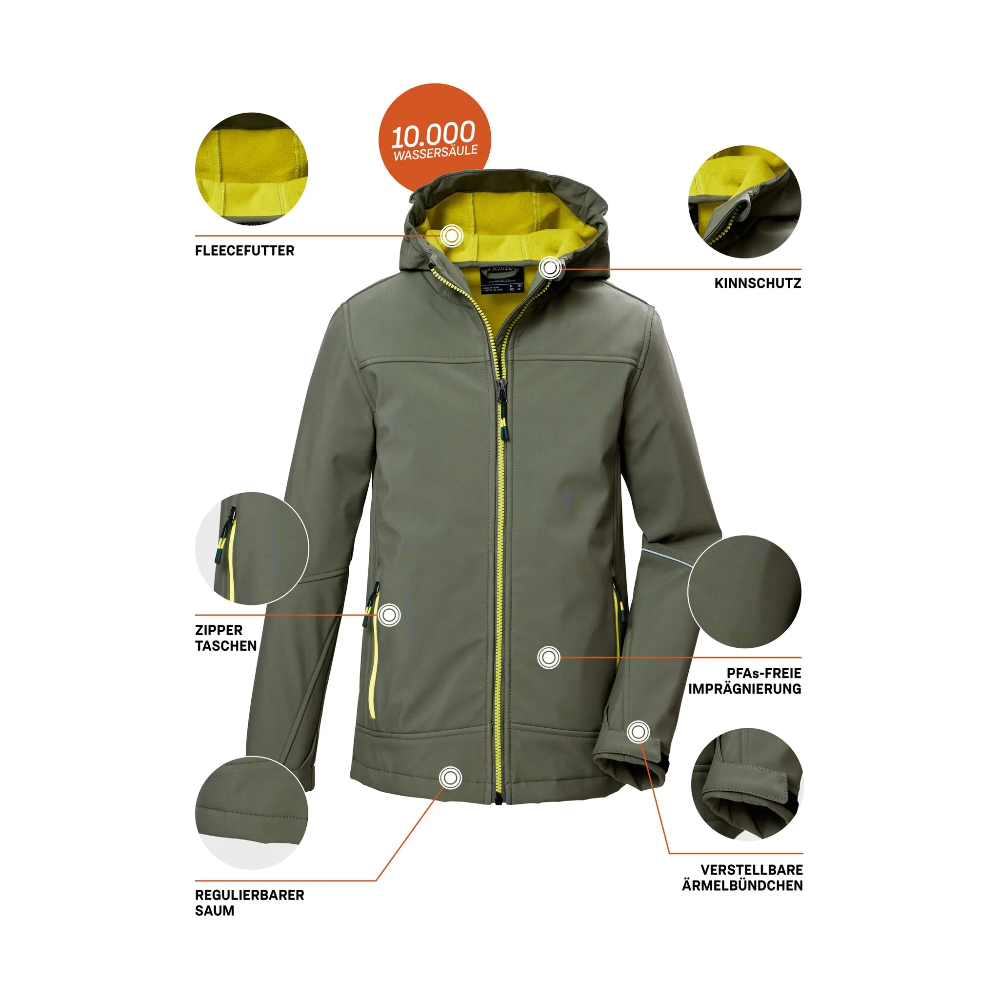 Куртка софтшелл с капюшоном для мальчика от killtec сочетает в себе функциональность и стильный дизайн. Куртка водоотталкивающая благодаря полиуретановому ламинату с водяным столбом 10 000 мм. Регулируемые манжеты позволяют индивидуально регулировать размер. Идеально подходит для переходного периода, обеспечивает защиту от ветра и оснащен светоотражающими элементами. Защита подбородка на молнии предотвращает защемление кожи. Куртка отличается теплым флисом на спине и флисовой вставкой на капюшоне. Сетчатая вставка и подол со шнурком для регулировки ширины подчеркивают функциональность. Для killtec особенно важно сделать коллекции более устойчивыми и ориентированными на будущее. killtec все больше полагается на более ответственные производственные процессы. Поэтому эта куртка была пропитана веществами, не содержащими фтора.