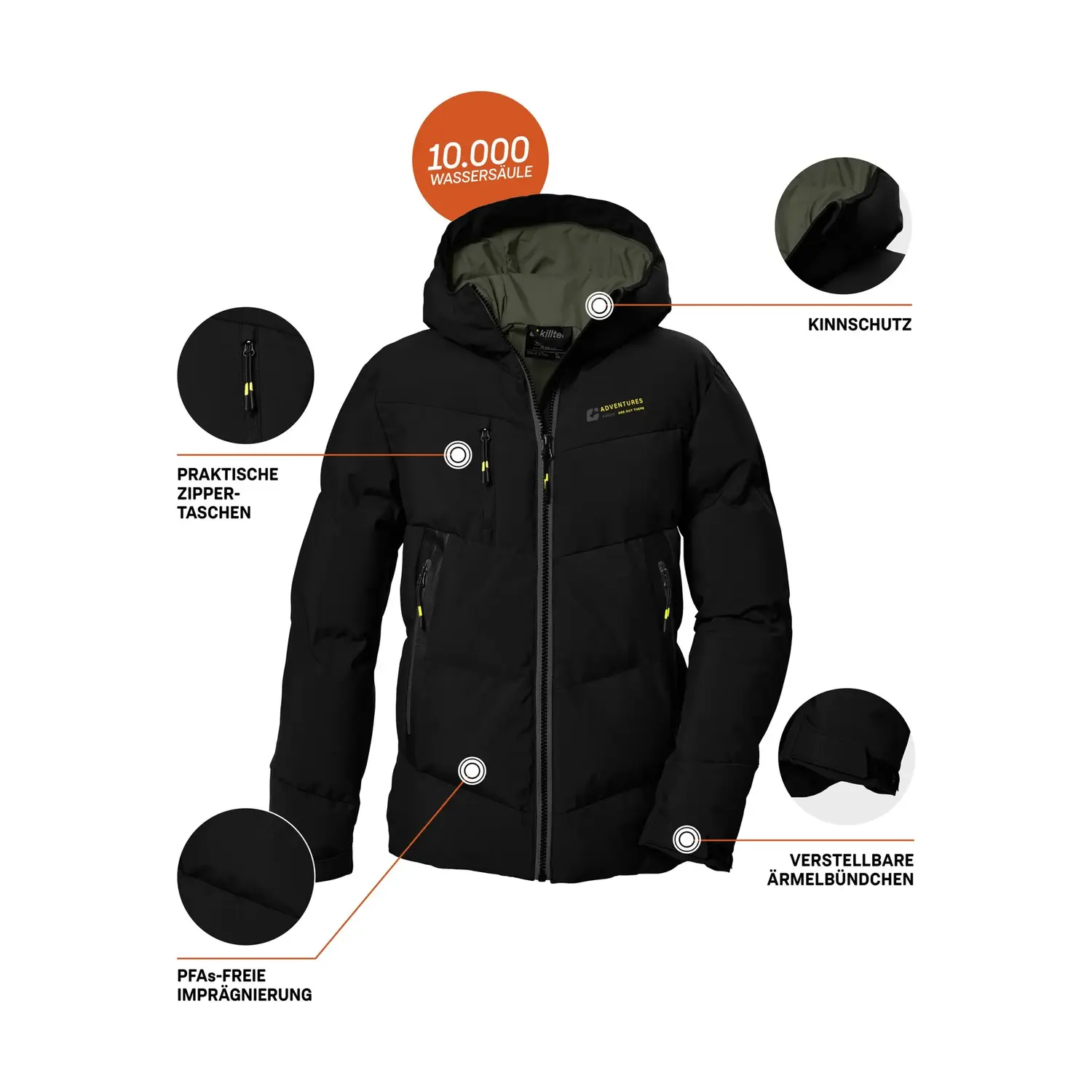 Пуховик для мальчика от killtec сочетает в себе стиль и функциональность. Куртка водоотталкивающая благодаря полиуретановому ламинату с водяным столбом 10 000 мм. Регулируемые манжеты обеспечивают индивидуальную посадку. Плотный наполнитель, обращенный вниз, не только придает ему привлекательный вид, но и обеспечивает уютное тепло. Ветроотталкивающий материал, защита подбородка на молнии, а также нагрудный и боковые карманы завершают продуманный дизайн. Для killtec особенно важно сделать коллекции более устойчивыми и ориентированными на будущее. killtec все больше полагается на более ответственные производственные процессы. Поэтому эта куртка была пропитана веществами, не содержащими фтора.