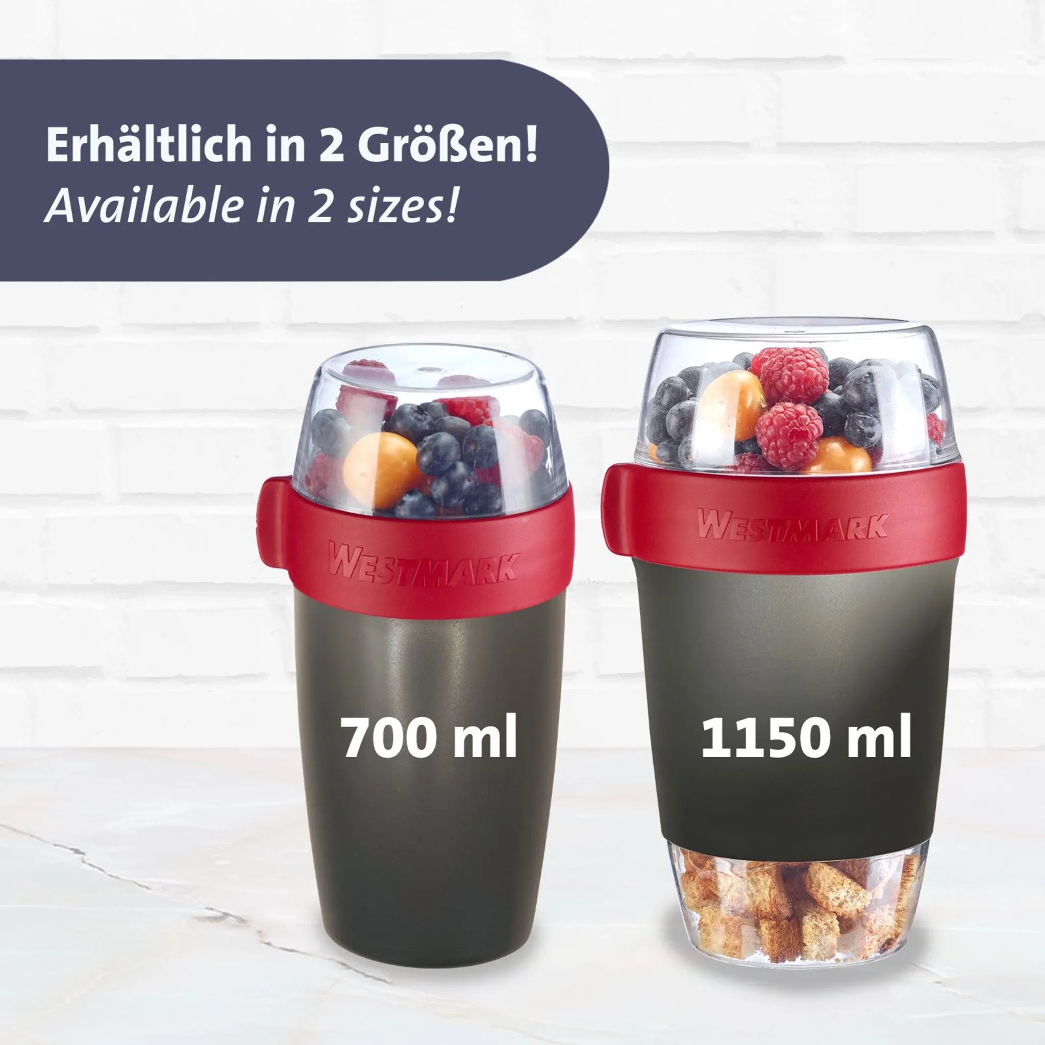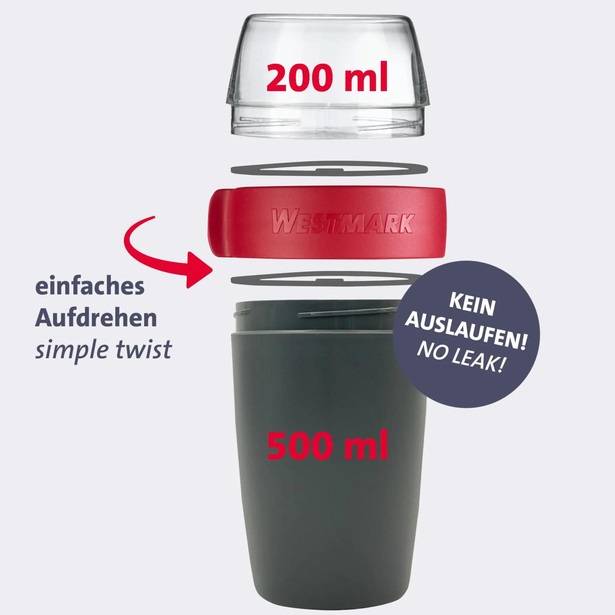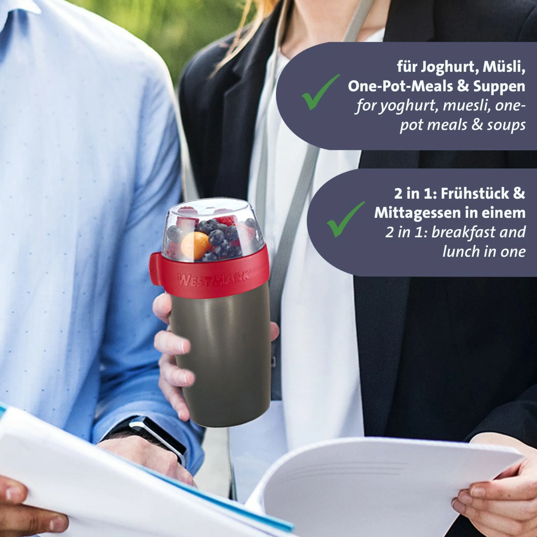 Наслаждайтесь мюсли в дороге с чашкой для мюсли WestmarkЧашка для мюсли Westmark — идеальный спутник в дороге, позволяющий взять с собой вкусную еду, будь то суп, порция еды, йогурт или мюсли. Благодаря двум герметичным отделениям в нем достаточно места для различных ингредиентов. Белое отделение можно использовать даже без крышки в микроволновой печи, чтобы разогреть еду. Надежные помощники на свежем воздухе Чашку для хлопьев также можно замораживать, поэтому вы можете легко приготовить и заморозить еду. За всеми частями чашки для хлопьев легко ухаживать, и их можно легко мыть в посудомоечной машине. Чашка также не содержит BPA, что обеспечивает дополнительную безопасность и безвредность. Откройте для себя практичную чашку для хлопьев Westmark и наслаждайтесь едой в дороге. Будь то в офисе, в школе или в путешествии – с этой чашкой у вас всегда под рукой вкусная и полезная еда.