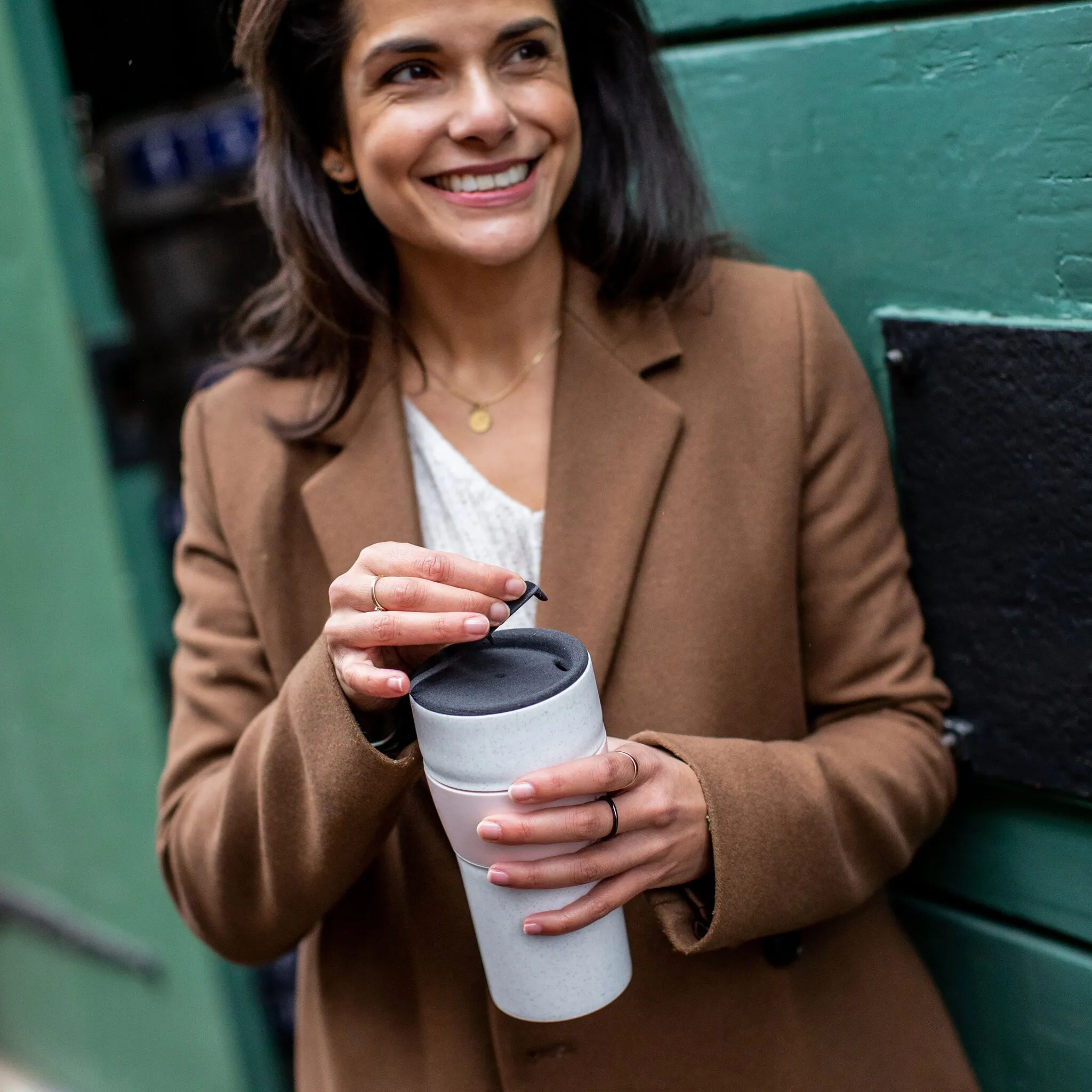 AROMA TO GO XL быстро становится незаменимым помощником на ежедневной основе. Благодаря гибким рейкам крышка сидит на чашке как влитая и позволяет комфортно пить. Высокая кружка легкая и небьющаяся, а ее тонкая форма позволяет удобно держать ее в руках. Он также пользуется успехом в личном транспорте, поскольку AROMA TO GO XL помещается во все стандартные подстаканники в автомобиле. Особым дополнением является инновационная крышка. Клапан надежно закрывает питьевое и воздушное отверстие, чтобы ничто случайно не капало на одежду, пока вы находитесь на улице.