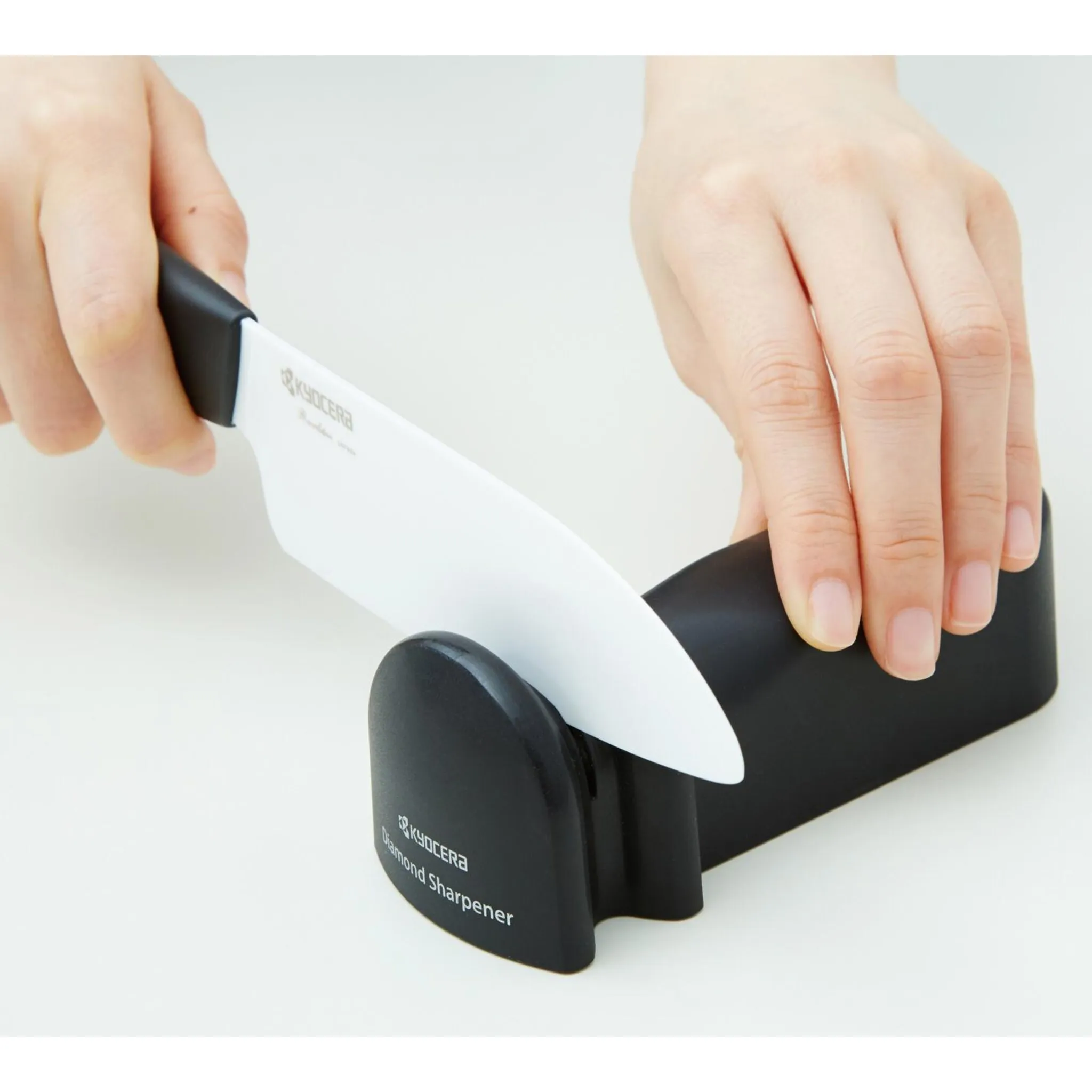 Первая ручная точилка для керамических и стальных ножей. Эта сверхэффективная точилка для ножей с высококачественным алмазным кругом мгновенно затачивает и затачивает керамические и стальные ножи. Алмазный круг с зернистостью 1000 гарантирует превосходную долговечность и длительный результат. Этот практичный кухонный помощник поможет удалить сколы на кромке лезвия глубиной до 0,5 мм.