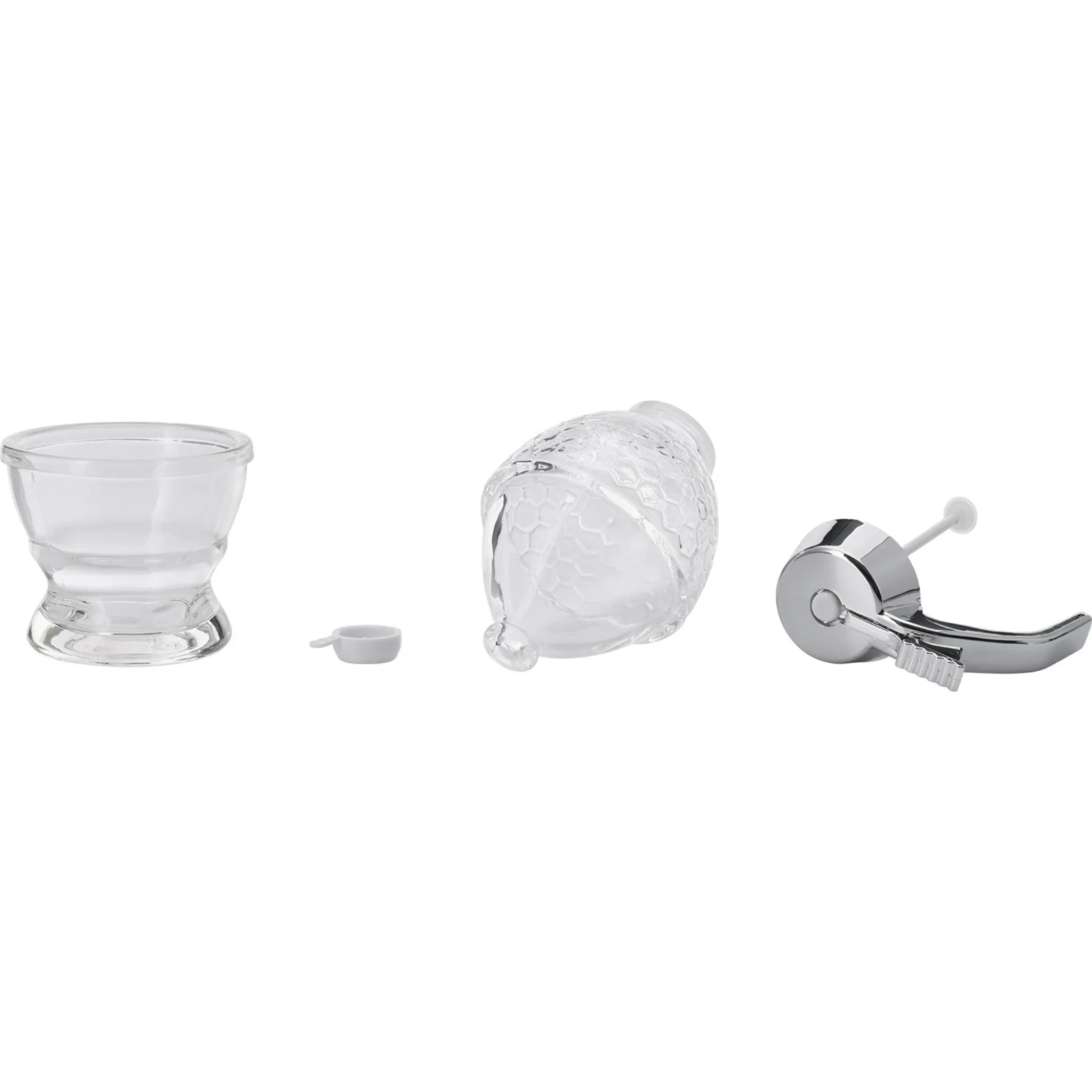 ВЕСТМАРК медовая груша, «Делюкс». Просто налейте мед в медовую грушу, и его можно будет легко и аккуратно сбрызнуть хлебом. Изюминка: поскольку вам не нужно окунать столовые приборы, мед всегда остается прозрачным, и на нем не остаются остатки масла или крошки. Материал: стекло, хромированная крышка. Емкость 200 мл.