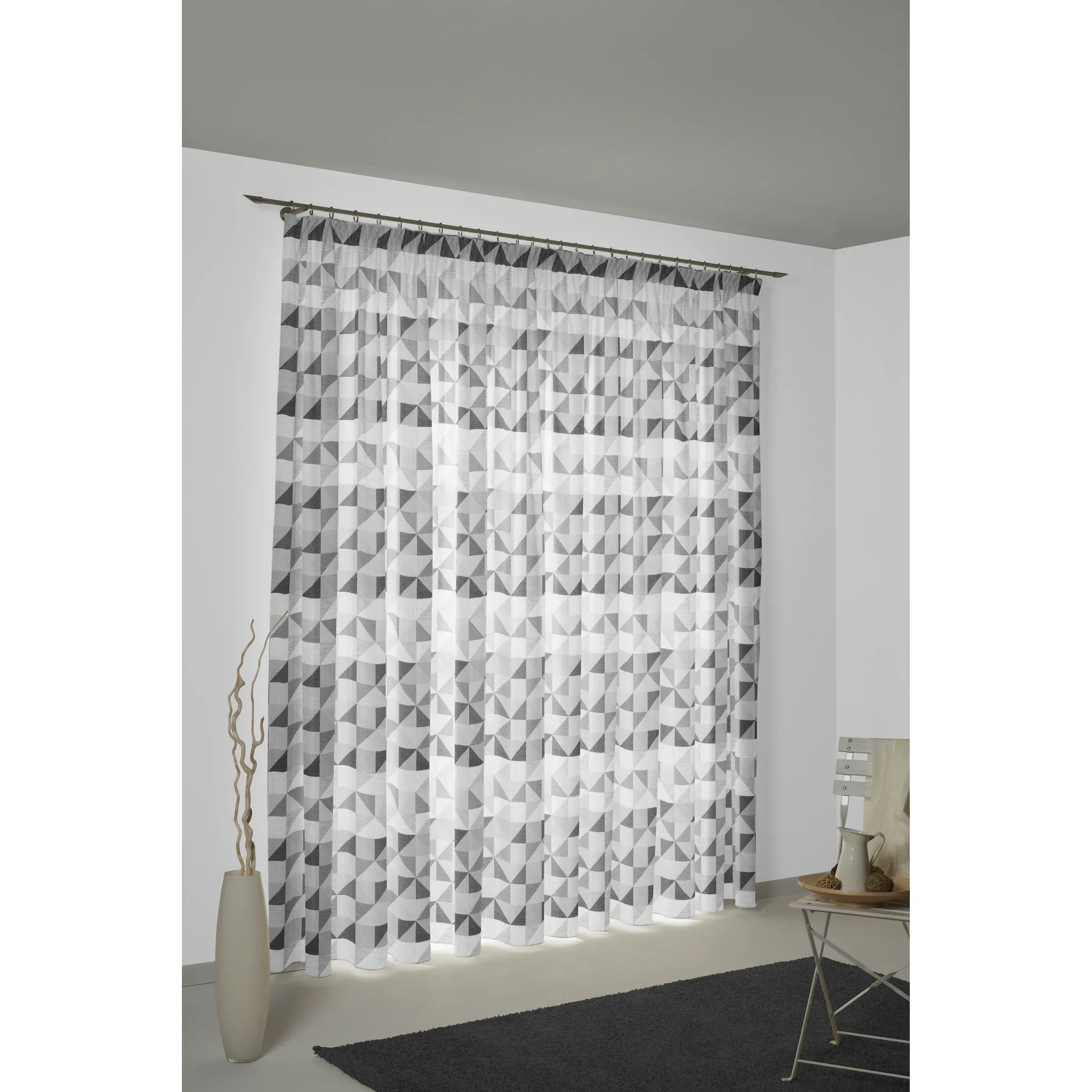 Ткань с тонкой, гладкой поверхностью. Непрозрачные ткани слегка темнеют и закрывают обзор снаружи. Ткани с рисунками расставляют акценты и идеально дополняются однотонными тканями. Производство Германия, непрозрачная ткань, геометрический рисунок, простота в уходе.