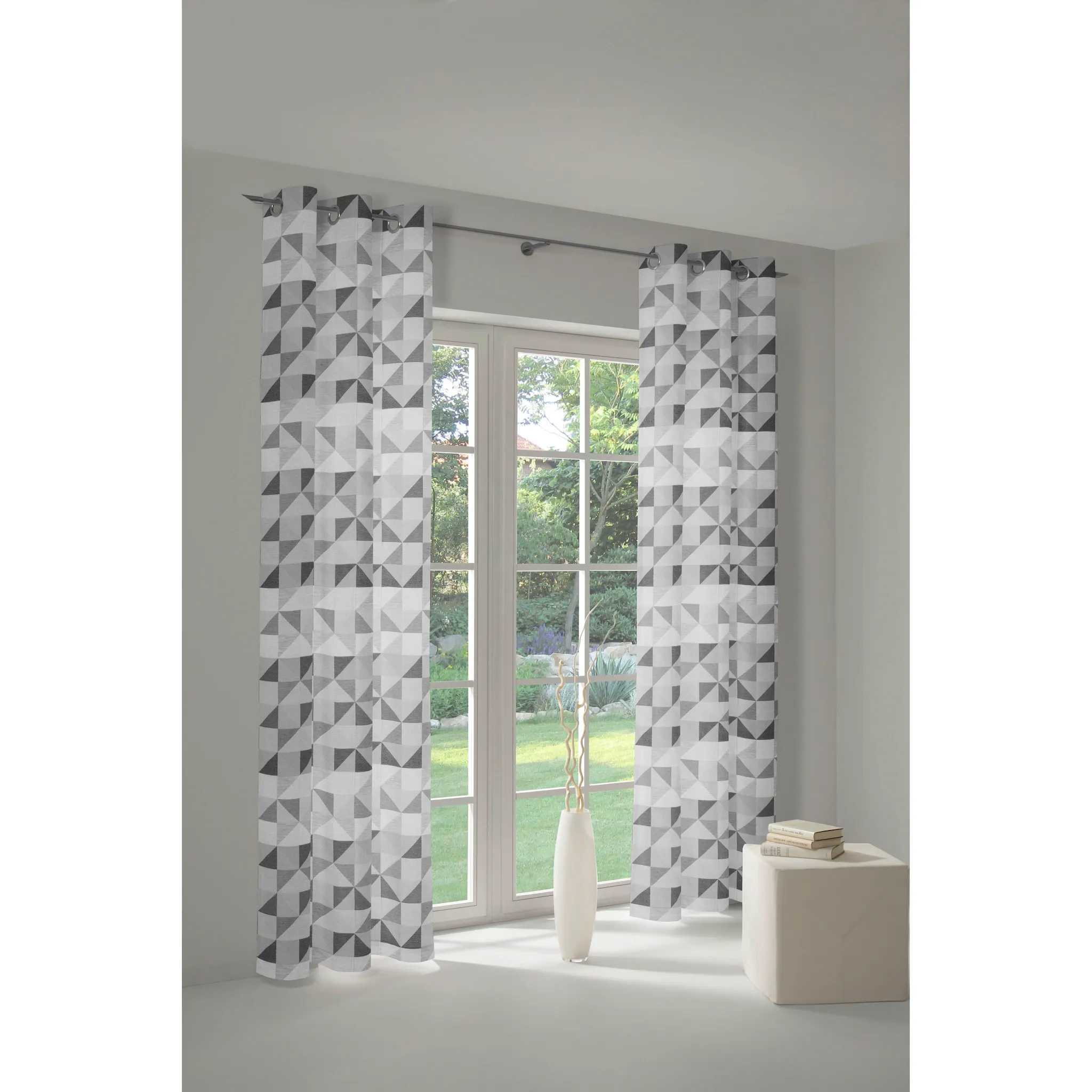 Ткань с тонкой, гладкой поверхностью. Непрозрачные ткани слегка темнеют и закрывают вид снаружи. Ткани с рисунками расставляют акценты и идеально дополняются однотонными тканями. Производство Германия, непрозрачная ткань, геометрический рисунок, простота в уходе.