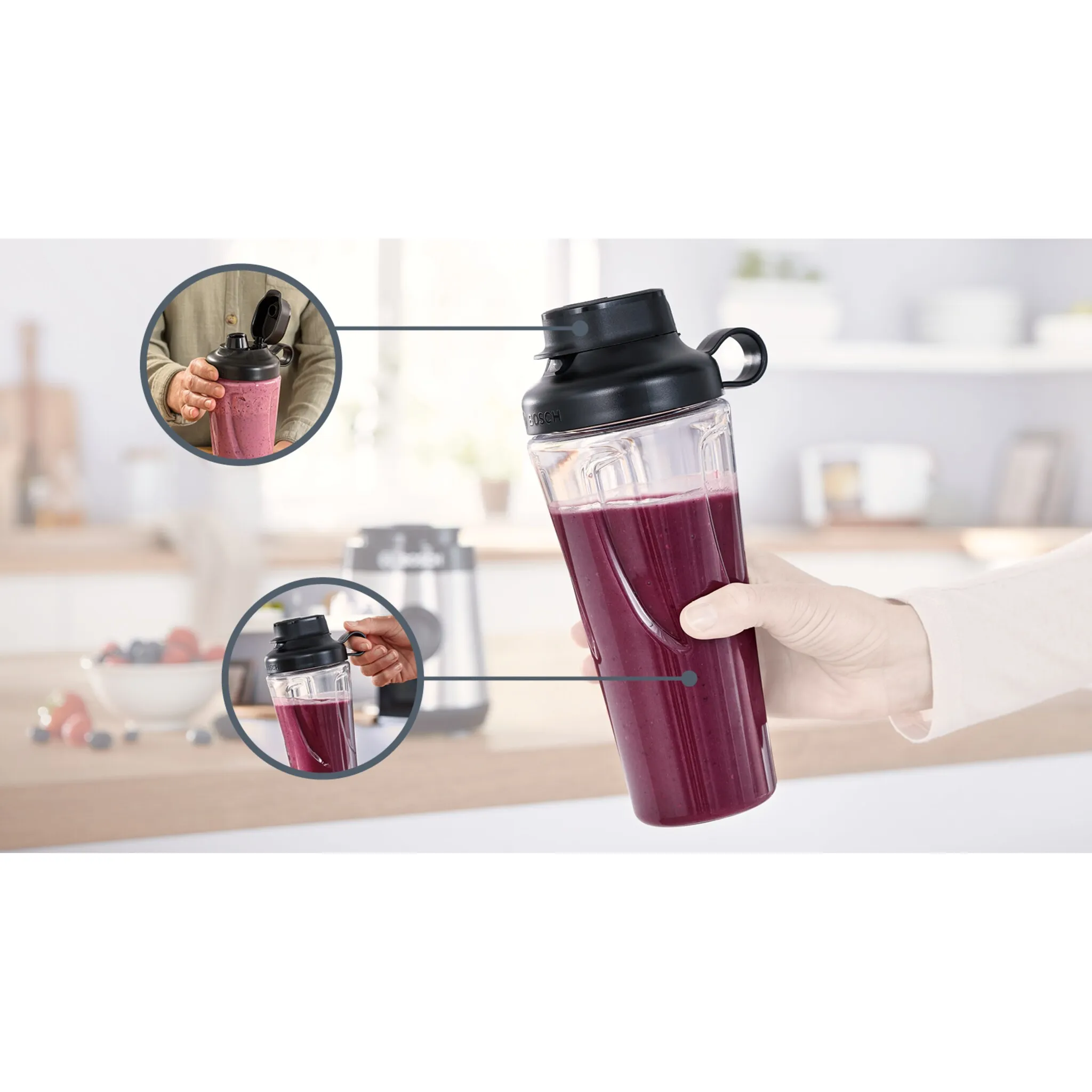 Бутылка To Go MMZBTK1B от Bosch подходит для здорового, безопасного и удобного приготовления любых блюд и напитков. Смешайте непосредственно в бутылке ToGo: без декантации. Хорошо подходит