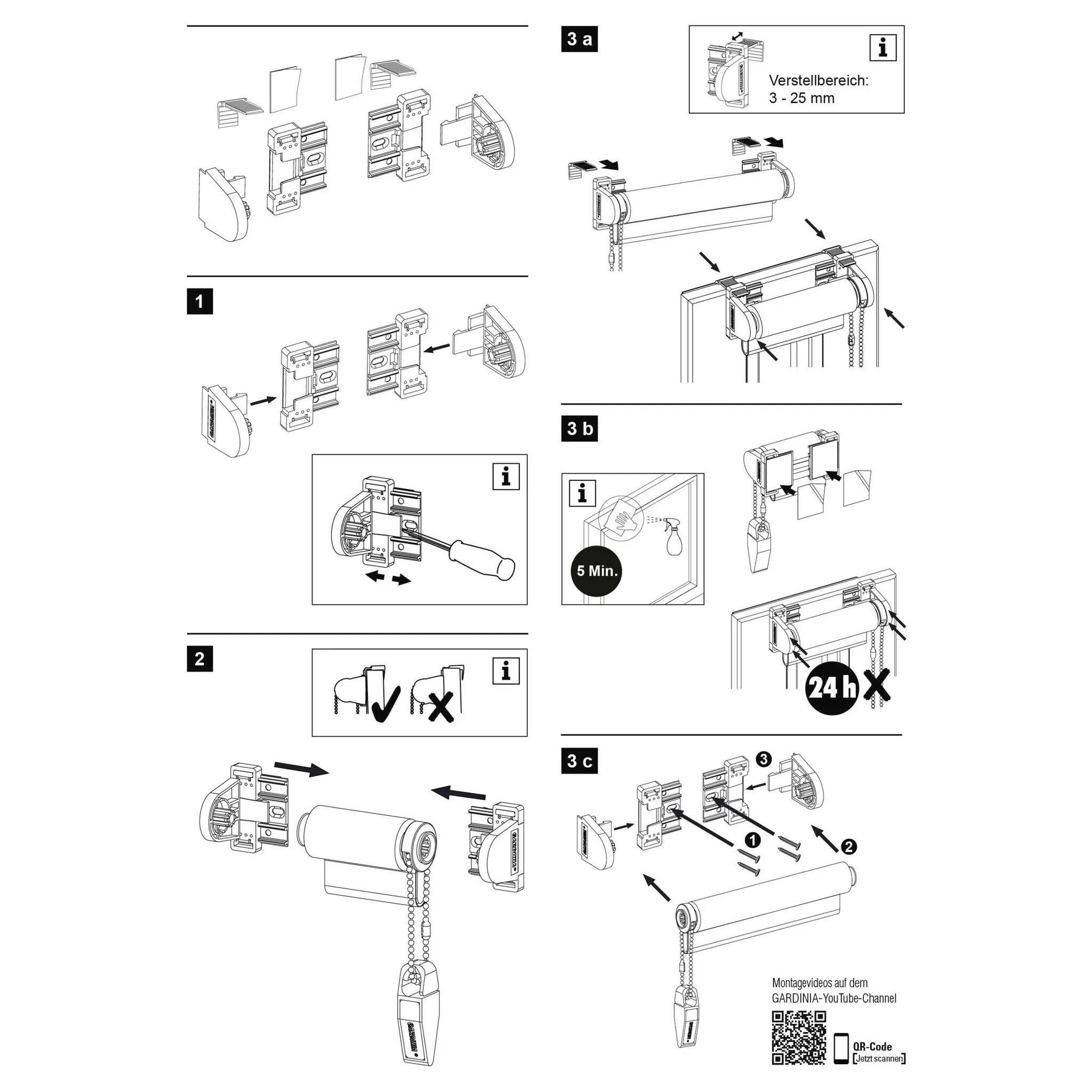 С помощью практичного клея и набора зажимов от GARDINIA рулонные шторы EASYFIX можно прикрепить к окну без сверления или привинчивания. Ролету можно прикрепить к открытой створке окна с помощью прижимных кронштейнов. Внимание: подходит только для окон с резиновыми уплотнителями. Диапазон регулировки зажимных опор составляет от 3 до 25 мм. Альтернативно, носители также можно использовать в качестве адгезивных носителей. Максимальная прочность клея достигается примерно через 24 часа. Для этого створку окна следует предварительно хорошо очистить. Монтаж с использованием клейкой основы особенно подходит для окон, которые невозможно открыть. Благодаря установке без сверления и шурупов рулонные шторы можно снять, не оставляя следов – идеально подходит для всех сдаваемых в аренду квартир.