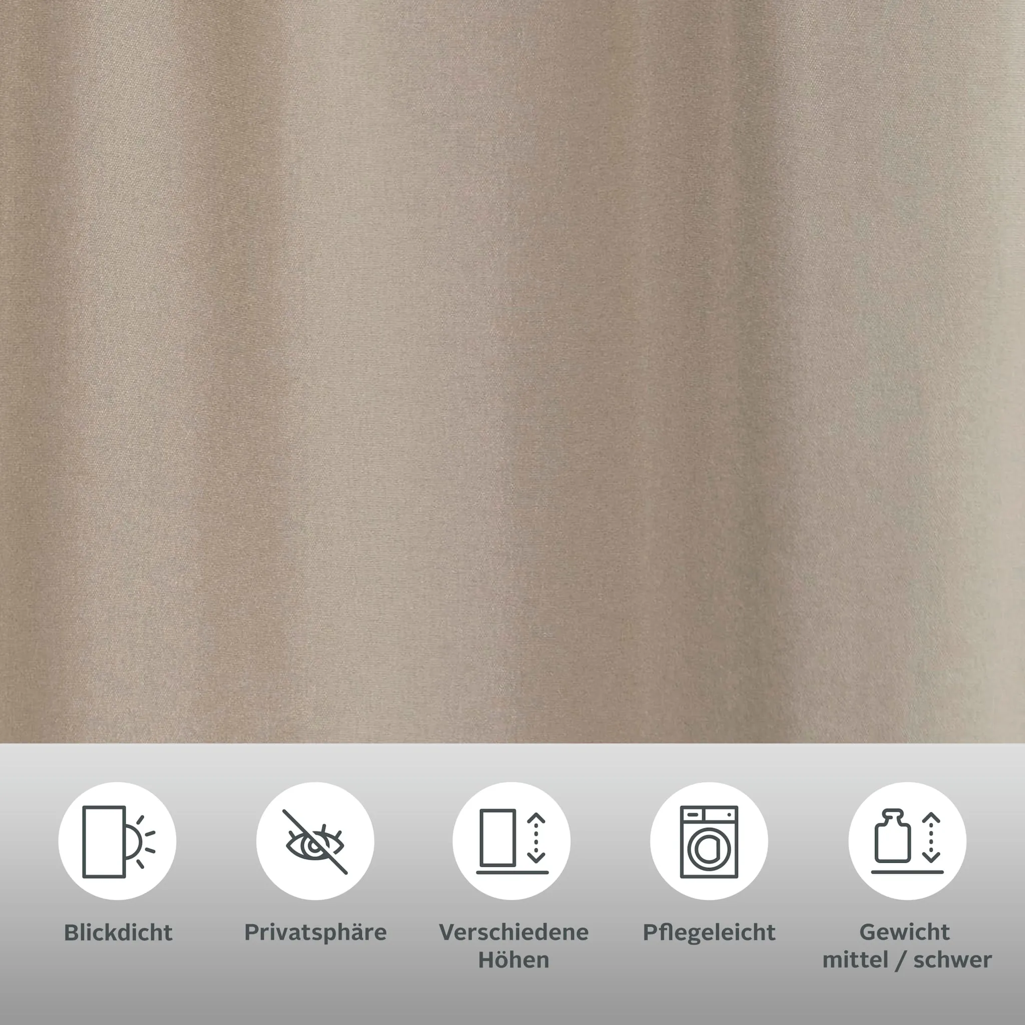 Непрозрачная ткань: благодаря этому качеству вы легко затемните комнату и закроете вид снаружи. Простой и быстрый монтаж с помощью петель диаметром около 35 мм. Современный однотонный дизайн подойдет к любому стилю интерьера. Вес 90 г/м², легкий и идеально подходит для нежного оформления окон. Легкое в уходе качество микрофибры, быстросохнущее и практичное в повседневной жизни.