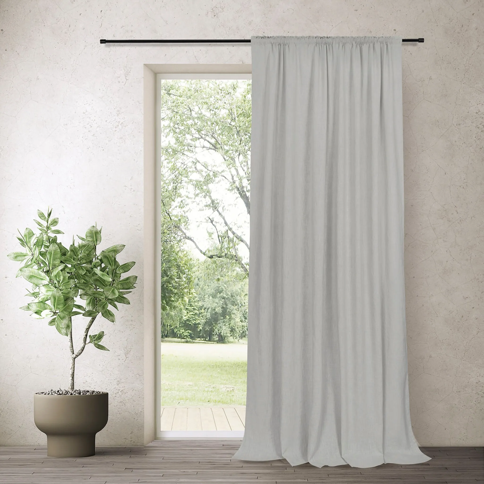 Ткань с фактурной поверхностью. Непрозрачные ткани слегка темнеют и закрывают вид снаружи. Однотонные ткани идеально сочетаются даже с тканями с рисунком. Непрозрачная занавеска из хлопка/льна