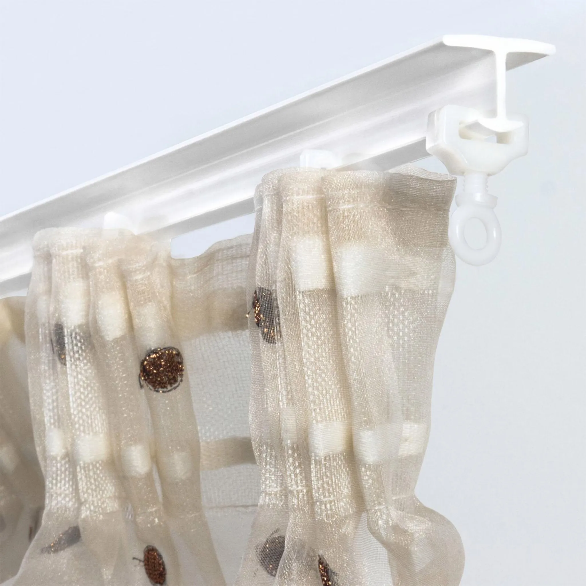 Замок для Т-образных рельсов Останавливает шторы в конце профиля или в желаемом месте. Защищает от случайных падений В практичном наборе 10 шт. Просто поместите его на Т-профиль – готово.