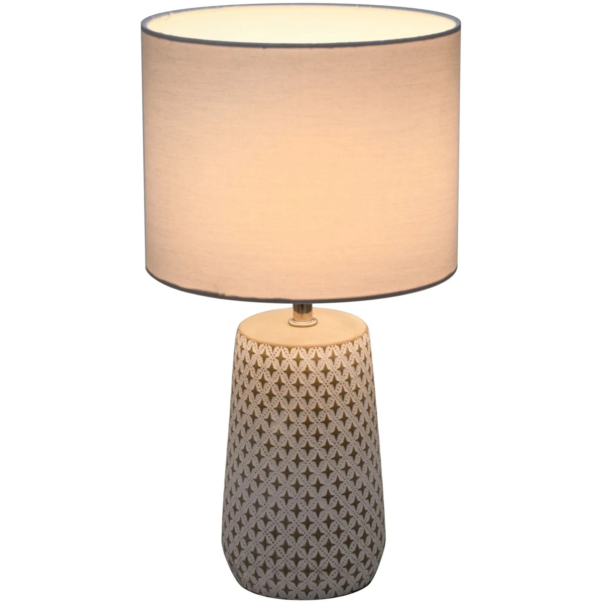Очаровательный уникальный предмет: настольная лампа Pretty Purity изготовлена ​​вручную из бетона и покрыта светло-серым лаком, который особенно хорошо подчеркивает тонкую структуру основания лампы. Вместе со светлым тканевым абажуром эта настольная лампа особенно хорошо гармонирует с другими естественными тонами, а также создает красивые контрасты в гостиных, оформленных в простых белых тонах. Имея высоту 36 см, он создает великолепные световые акценты на столах или комодах в спальне, гостиной и коридоре и создает уютную жилую атмосферу. В светильник можно вкручивать все лампочки с цоколем Е14. Настольная лампа Pretty Purity поставляется с кабелем, вилкой и шнуровым выключателем для включения и выключения. Ваш продукт Pauleen совершенно несложный: просто установите его, вставьте лампочку и наслаждайтесь. Pauleen — это красивые, модные светильники и идеи декоративного освещения, которые вы можете использовать для создания уютной атмосферы в своем доме. Не забудьте: закажите заодно подходящую лампу!