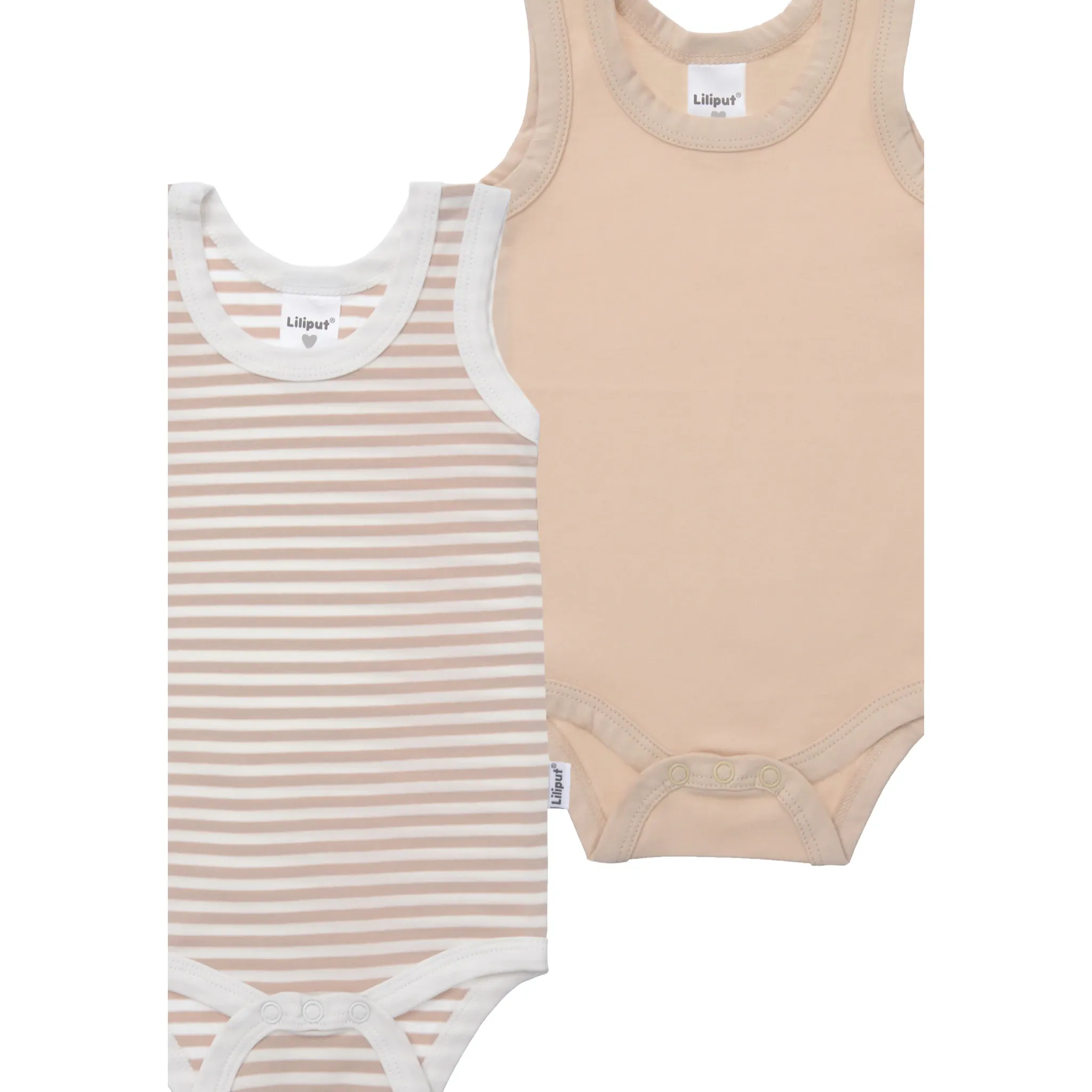 Боди для подмышек от Liliput доступно в практичной упаковке по две штуки. Комплект состоит из однотонного и полосатого боди. Однотонное боди изготовлено из 100 % хлопка, а полосатое боди — из 95 % хлопка и 5 % полиэстера, что делает оба боди чрезвычайно удобными в ношении. Приятная мягкость нежно воздействует на детскую кожу. Три практичные кнопки в области промежности облегчают надевание и снятие.