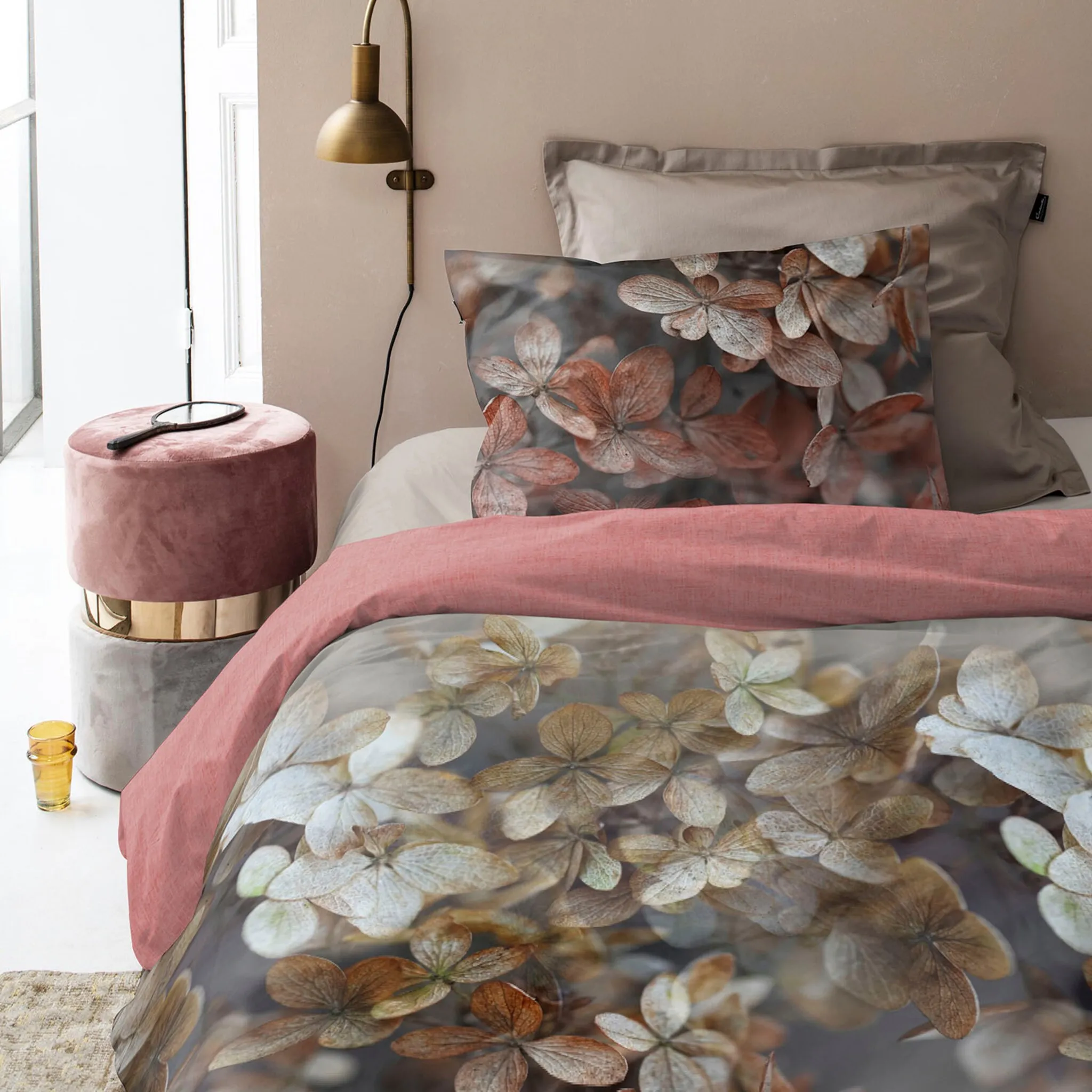 Постельное белье «Аннабель» от Золушки, изготовленное из 100% мягкого хлопкового сатина, перенесет вас в сказочный мир цветов. Великолепный фотопринт на постельном белье делает листья гортензии настоящими. Изнанка старого розового цвета с льняным эффектом. гарантирует, что вы сможете стильно оформить спальню. Наволочка и пододеяльник оснащены практичной застежкой-молнией, которую можно легко снять и снять. Их можно стирать в машине при температуре 60°C.