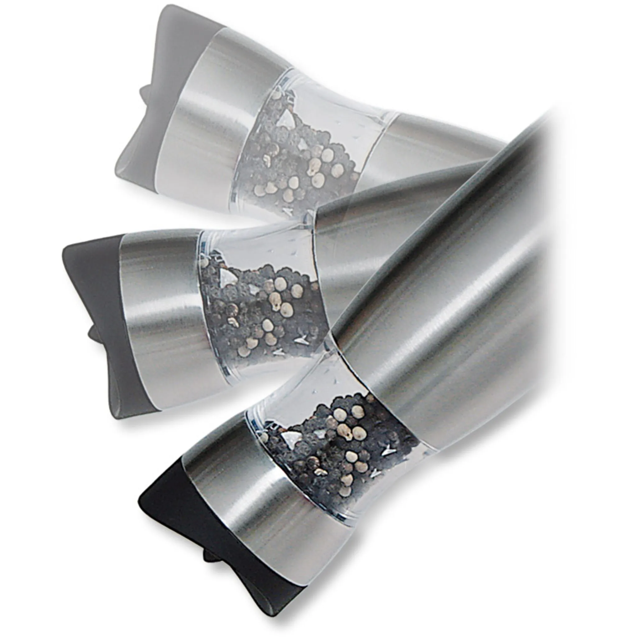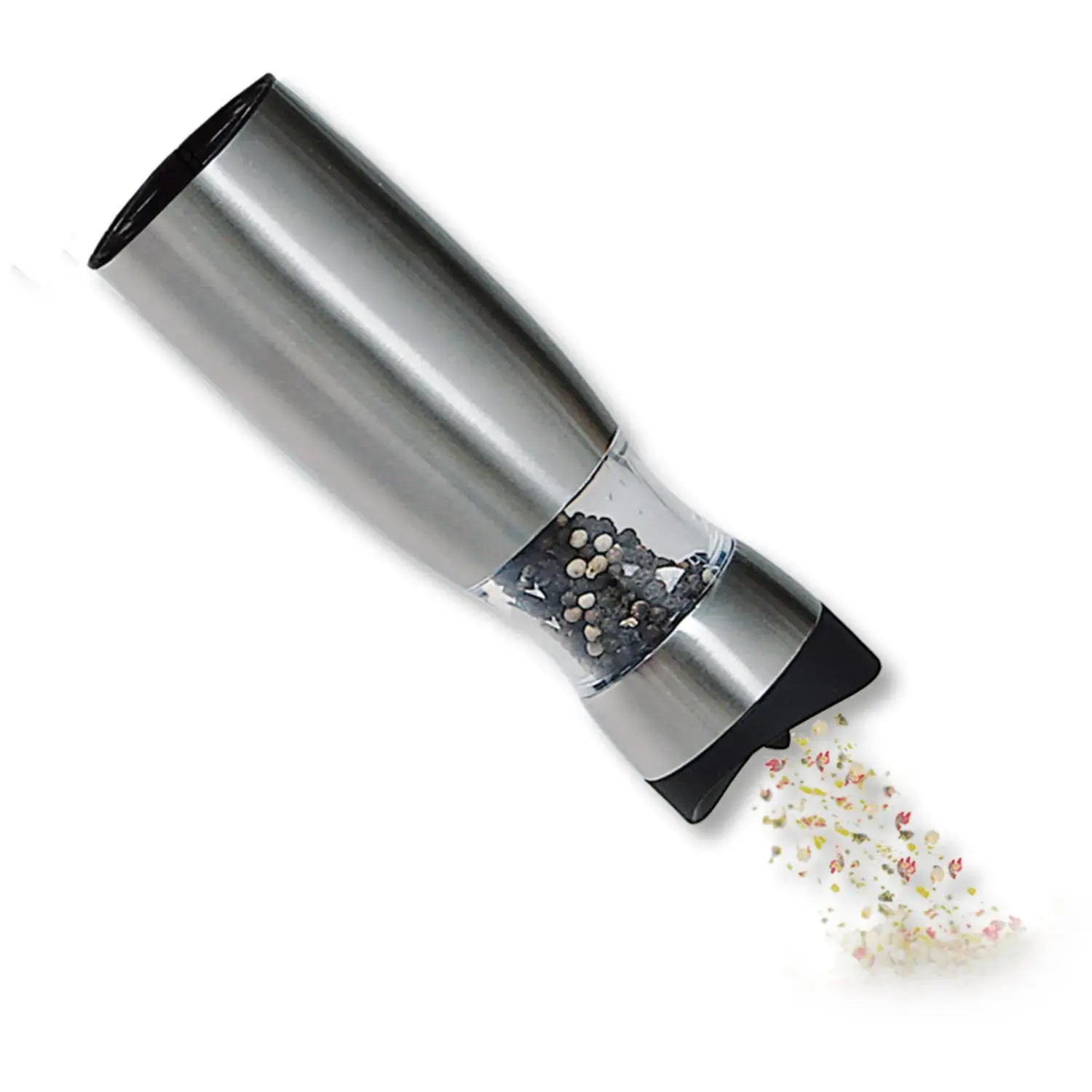 Мельница для перца с высококачественной электрической кофемолкой, изготовлена ​​из металла, а также может использоваться как мельница для соли. При повороте мельницы для перца процесс измельчения запускается автоматически. Доставка без батареек и специй.