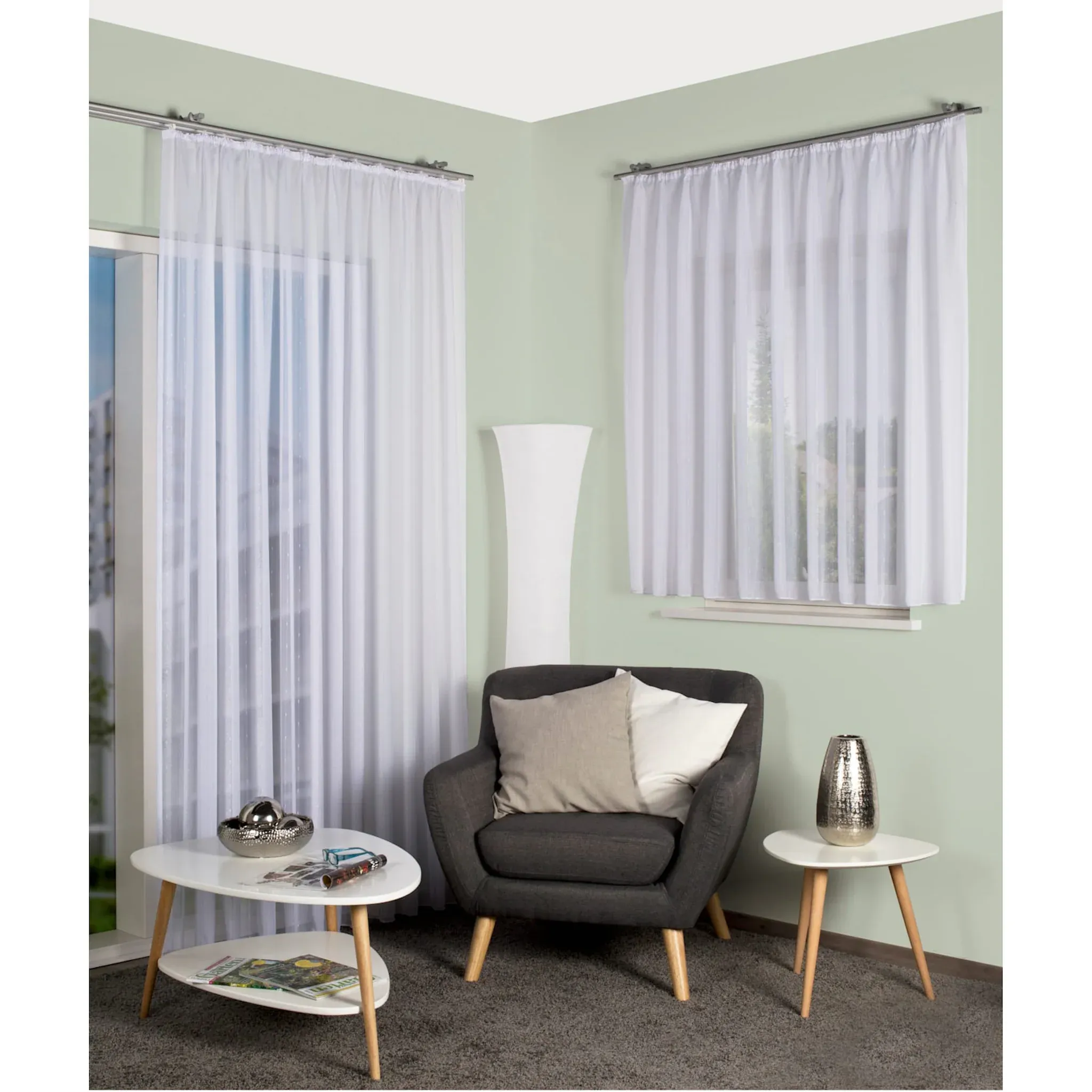 Dekostore Полупрозрачная качественная нить с тонким эффектом в полоску. Низ обработан свинцовой лентой для красивой драпировки. С завивающей лентой. 100% полиэстер. Моющийся.