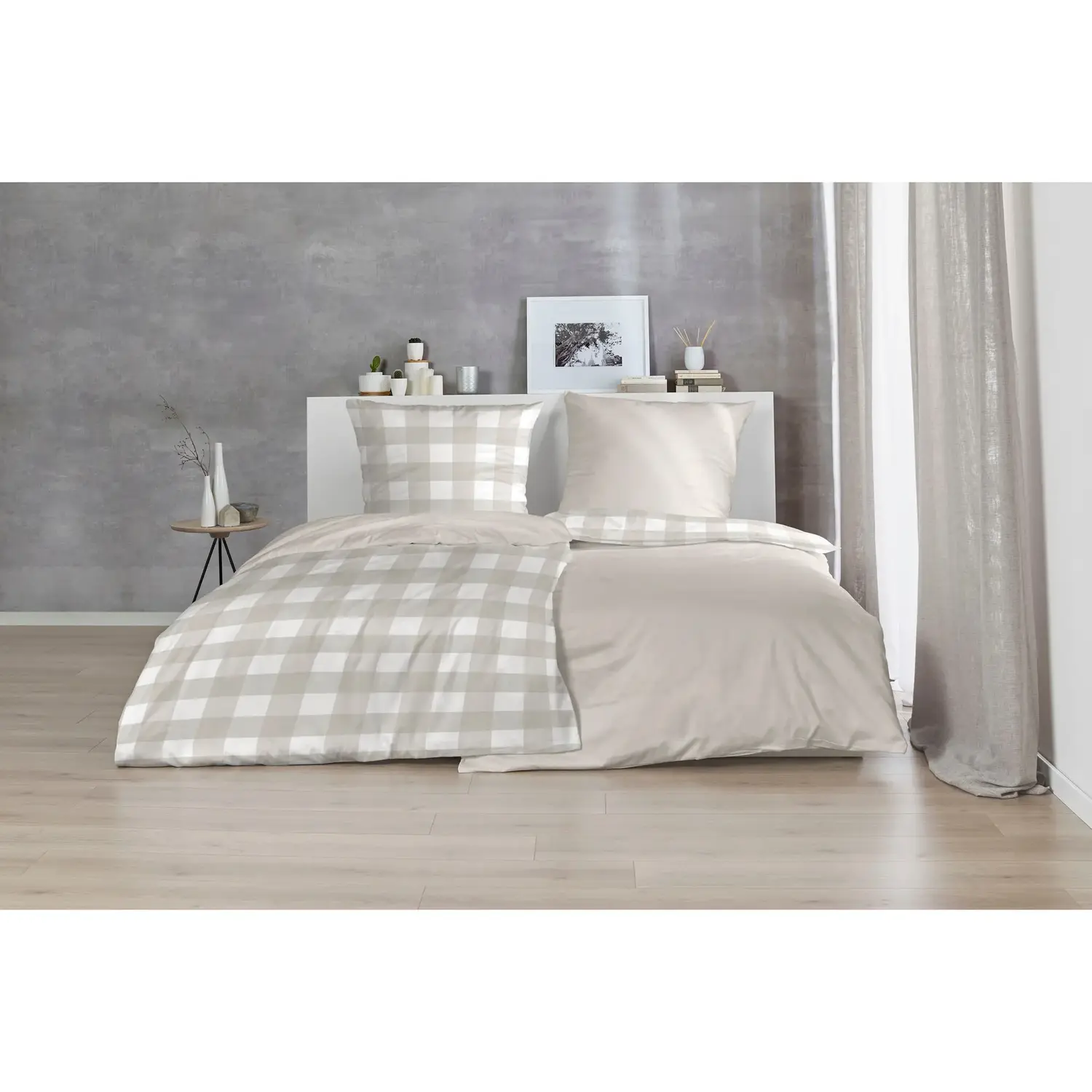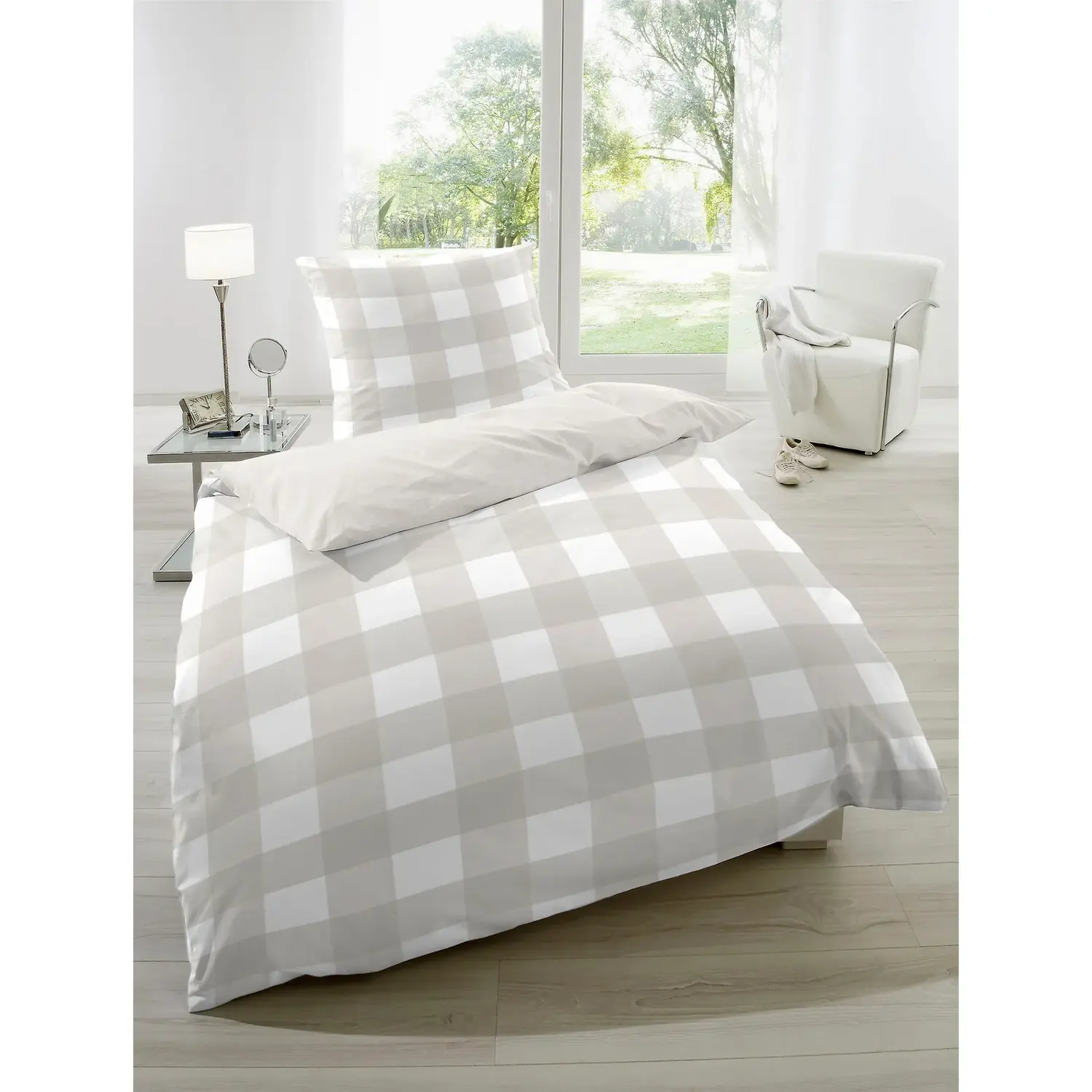 Постельное белье Primera «Basic Percale» в современном клетчатом дизайне, белый/бежевый