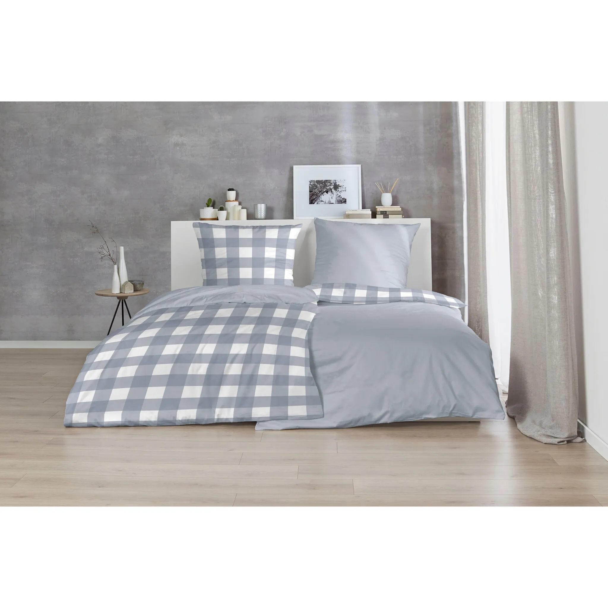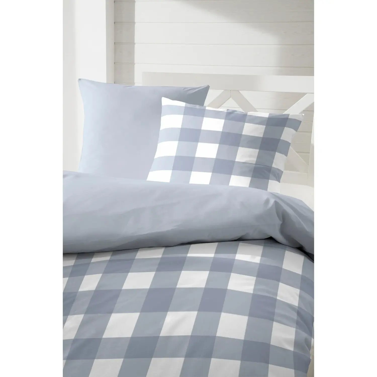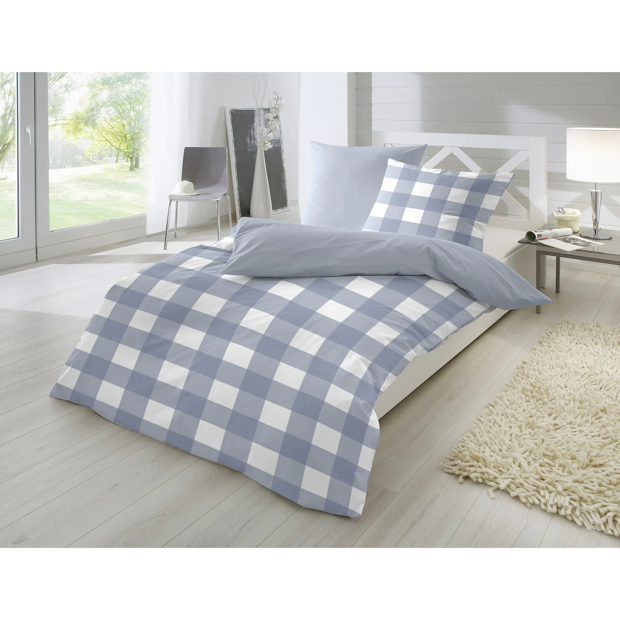 Постельное белье Primera «Basic Percale» в современном клетчатом дизайне, синий/белый
