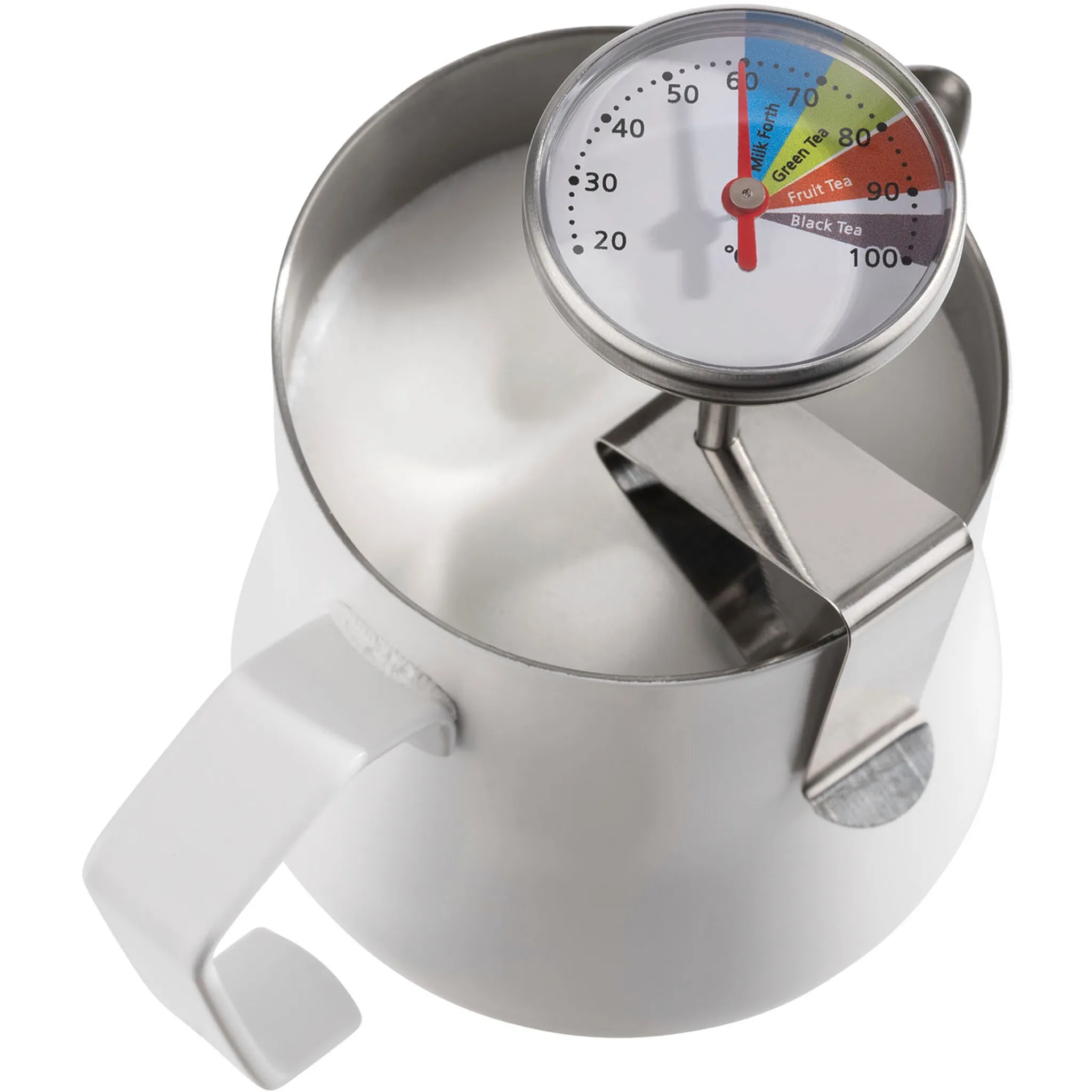 >Кувшин идеально подходит для приготовления молочной пены для горячих напитков, таких как капучино, латте маккиато, кафе-латте и т. д. Но можно использовать и для других целей. Кувшин изготовлен из нержавеющей стали 18/10. Снаружи он покрыт порошковой краской белого цвета, а внутри отполирован до матового цвета. Кувшин из нержавеющей стали очень легко мыть, его можно мыть в посудомоечной машине.