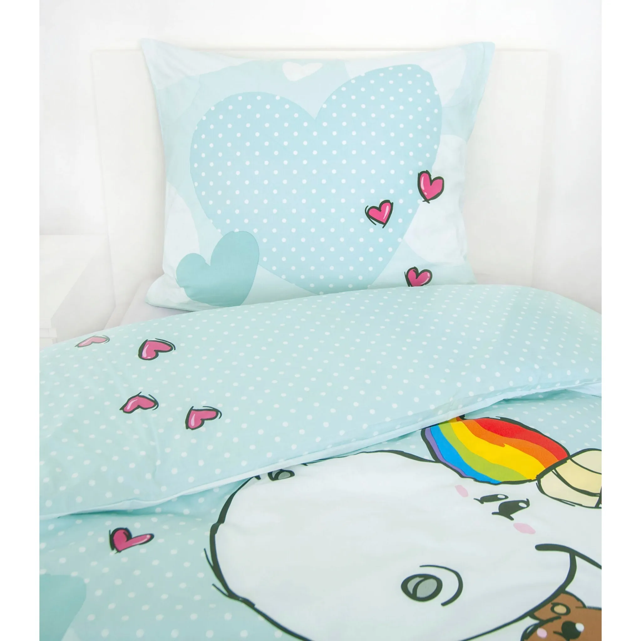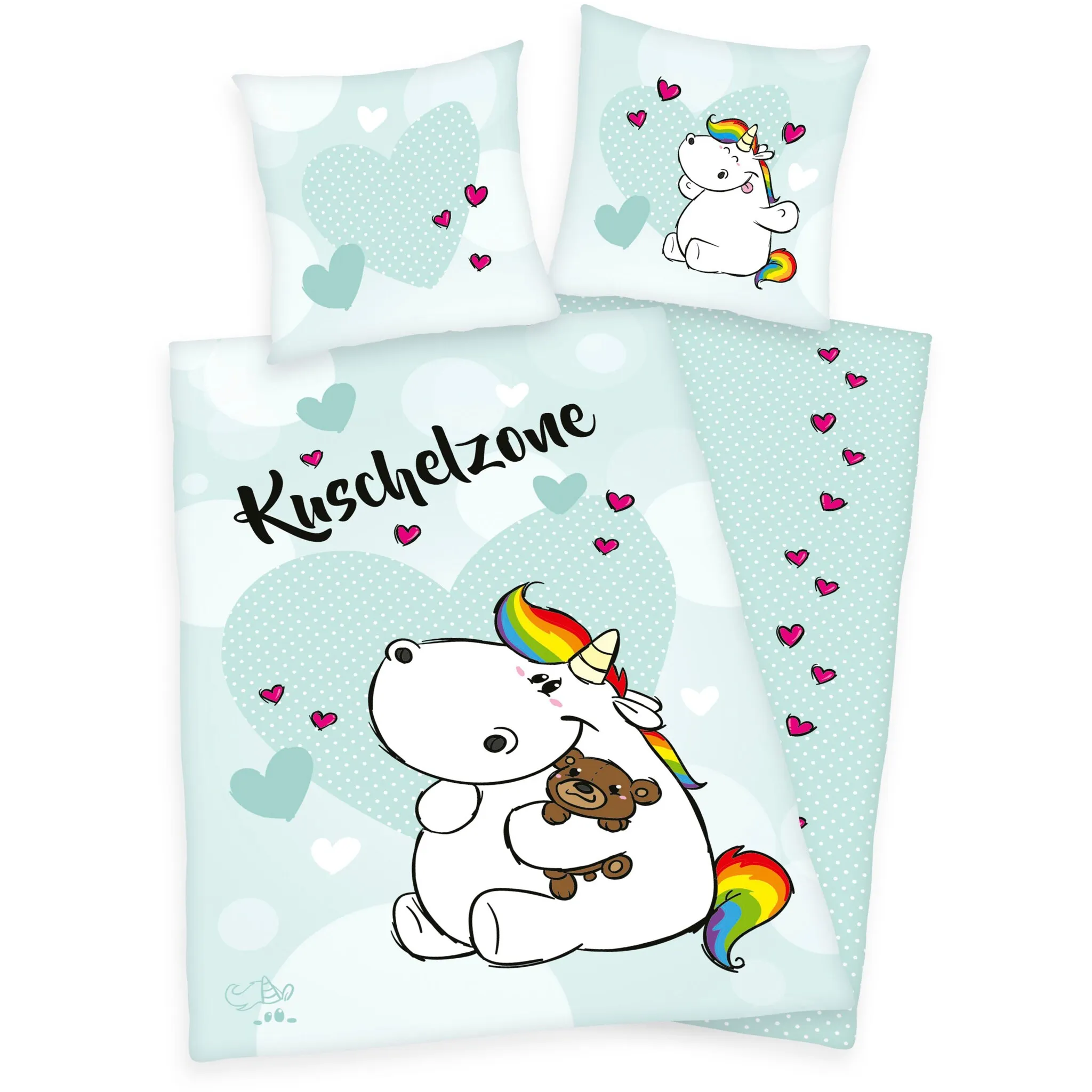 Постельное белье Pummeleinhorn из 100% хлопка (Renforce) Размер: 80х80 см + 135х200 см, наволочка и пододеяльник на фирменной молнии. СТАНДАРТ 100 сертифицирован OEKO-TEX Легко ухаживать и приятен для кожи