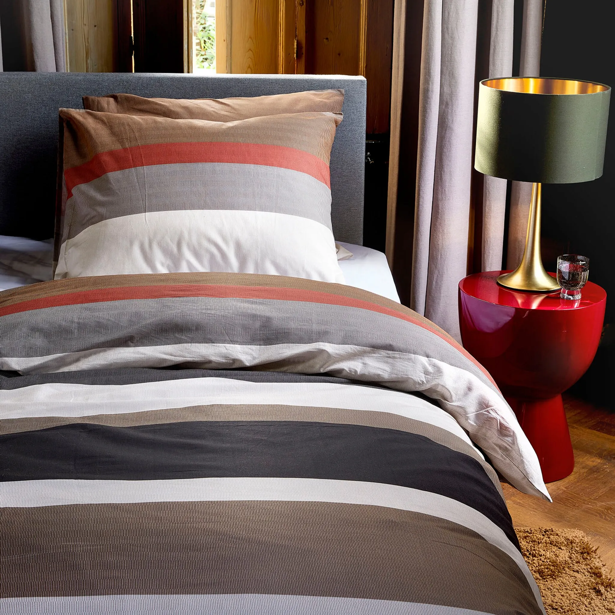 С комплектом постельного белья Casa от Damai из 100% хлопка Renforce ваша спальня станет настоящим оазисом благополучия. Постельное белье имеет полосатый узор в гармоничных теплых тонах. Тонкий ребристый вид придает всему этому особенно элегантный вид. Наволочку и пододеяльник можно стирать в машине при температуре 60°C, они имеют застежку-молнию для легкого снятия и снятия.