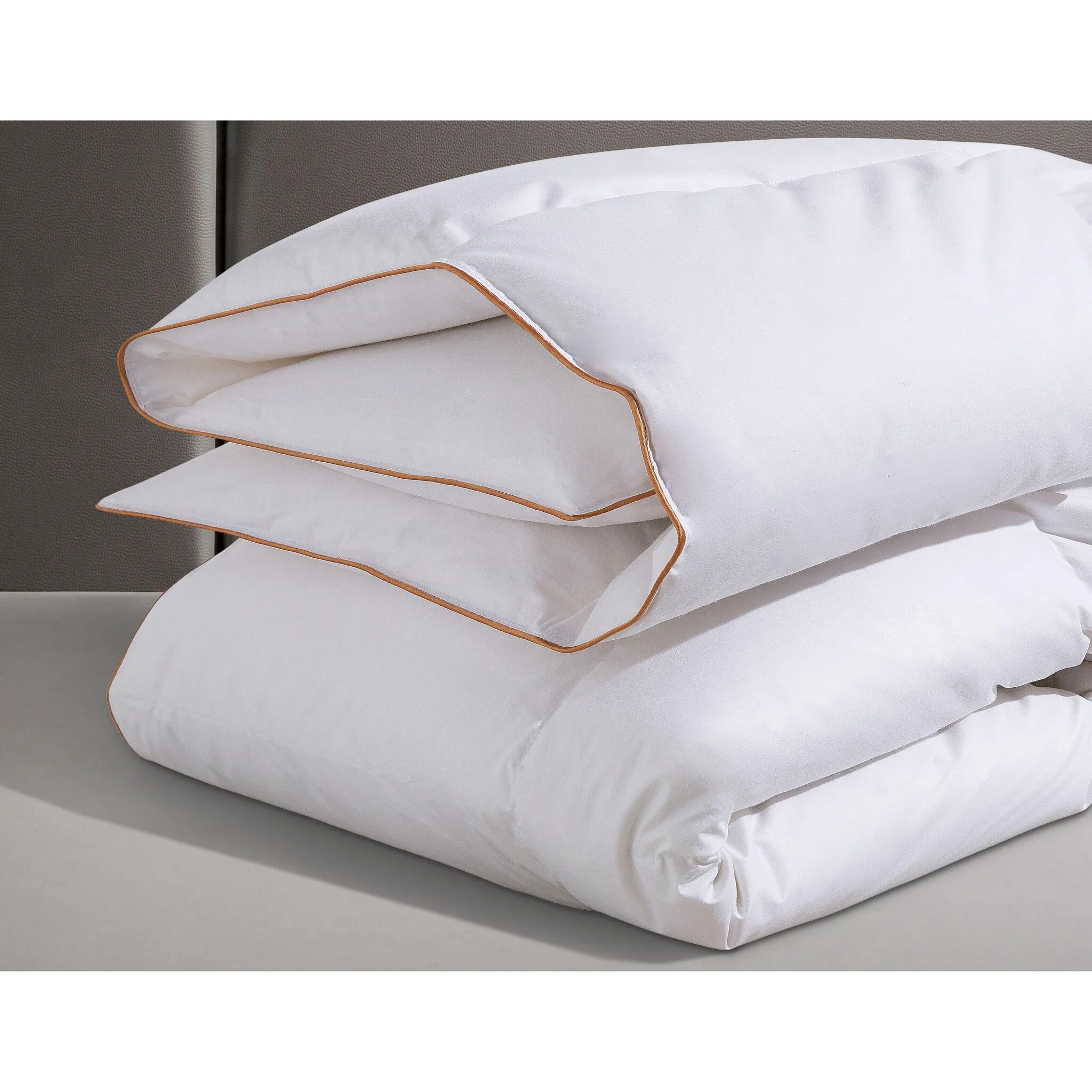 Нежное пуховое одеяло с пуховой подушкой «Элла» от Ribeco впечатляет своим высоким качеством. Он спроектирован так, чтобы быть легким с точки зрения тепла. Их наполнитель состоит из пуха и перьев. В качестве чехла используется легкая в уходе и дышащая хлопчатобумажная ткань. Чтобы пух и перья в одеяле не скользили, оно снабжено стежкой кассетной формы. Приятная деталь — тонкая окантовка медного цвета по краю, опоясывающая одеяло и подушку. Пуховое одеяло с перьевой подушкой «Элла» от Ribeco безопасно для кожи, а также подходит для аллергиков.