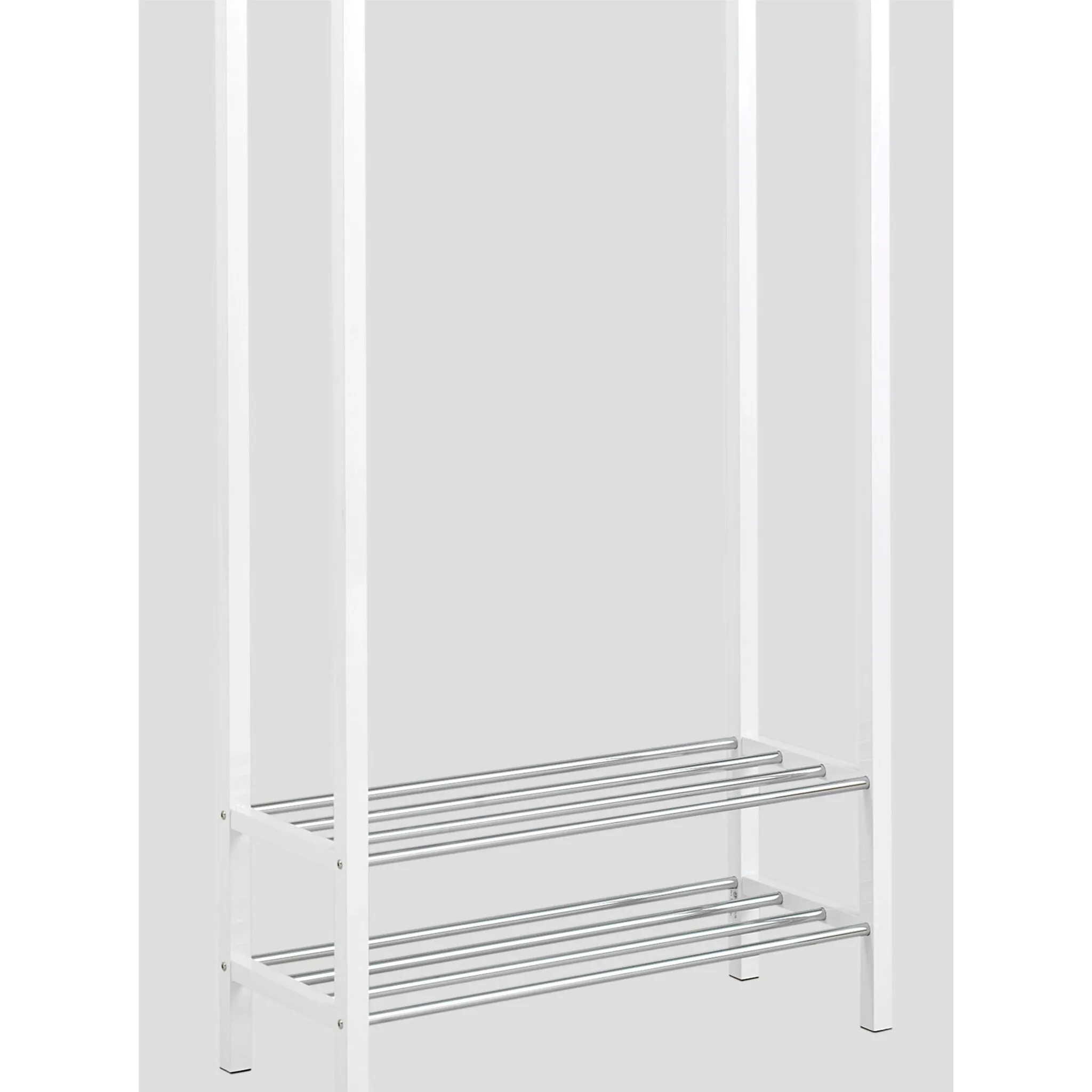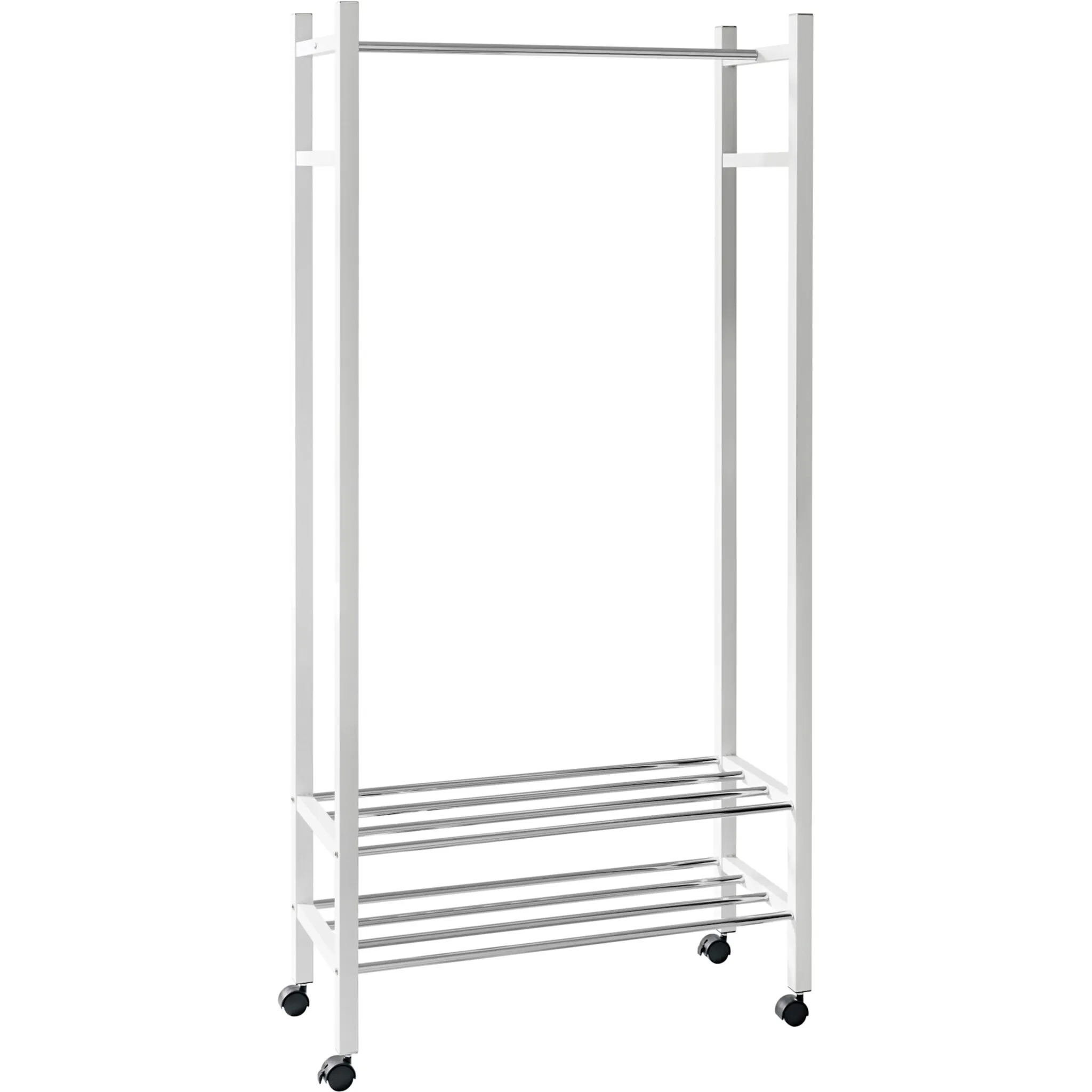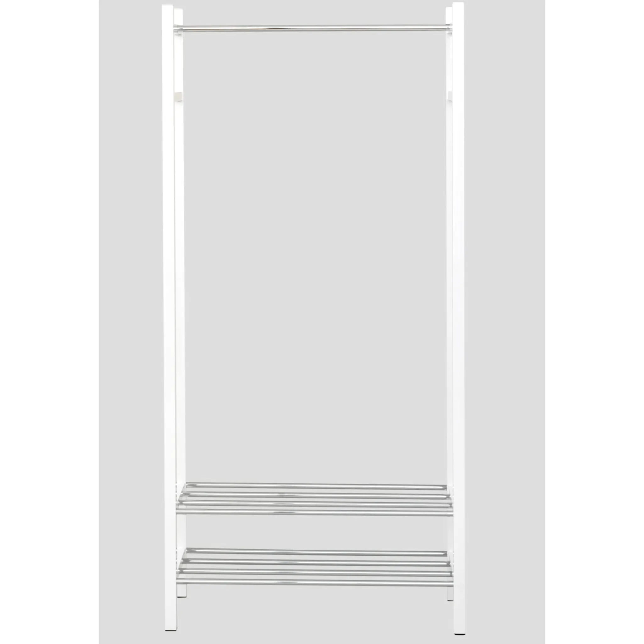 Вешалка для одежды Устойчивая конструкция из высококачественного металла. С хромированной штангой для одежды и 2 полками для обуви. Пожалуйста, заказывайте рулоны отдельно под арт. 22911261.