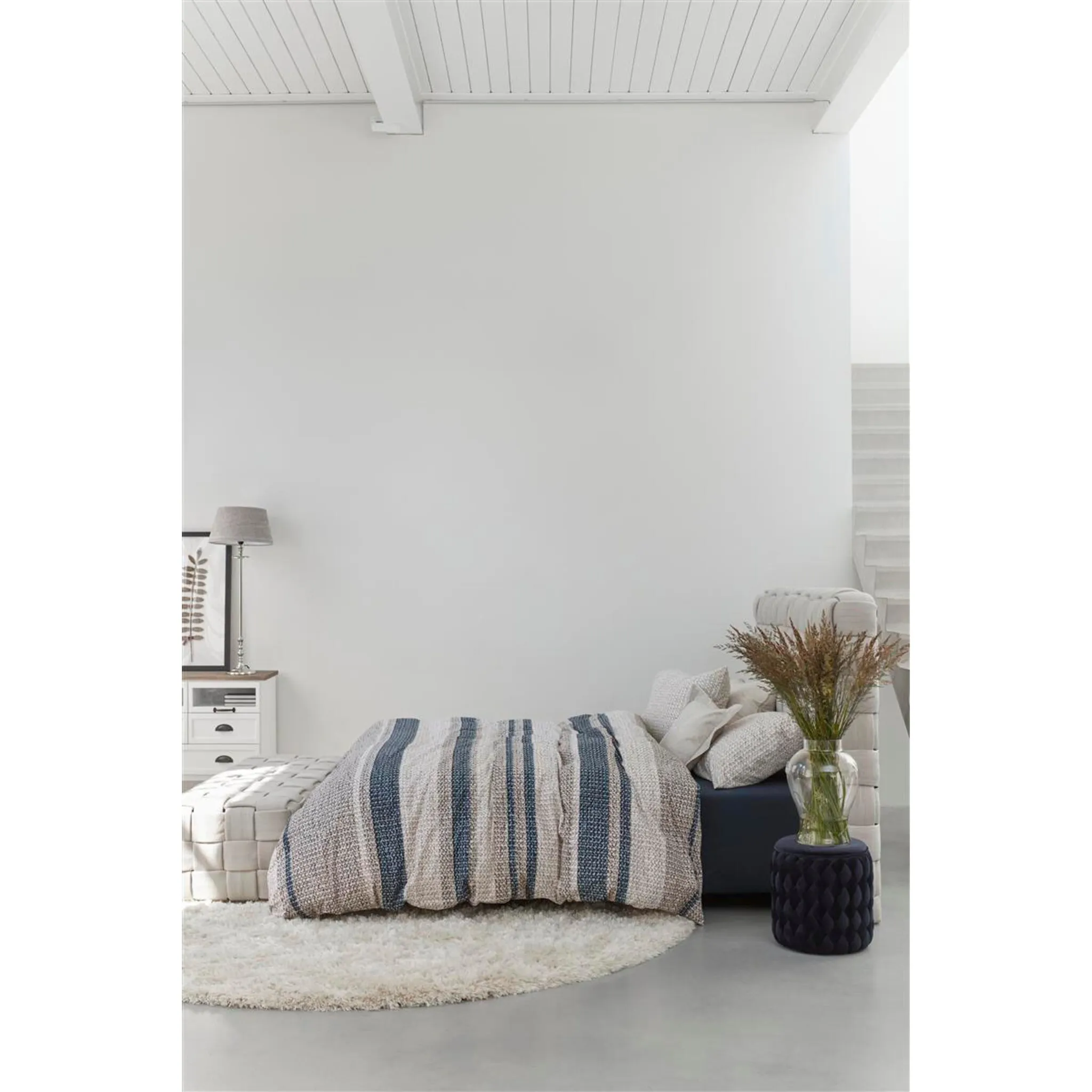 Постельное белье Rattan Stripes отличается горизонтальными панелями разной ширины. Панели имеют разные цвета: сине-серый в сочетании с серо-коричневым и бежевым. Узор из плетеного ротанга на основе придает постельному белью теплый вид. Передняя и задняя часть пододеяльника одинаковы. Чехлы на подушки простые и имеют плетеный узор из ротанга. Сочетайте это постельное белье с декоративной подушкой Flaxy из коллекции постельного белья Rivièra Maison.