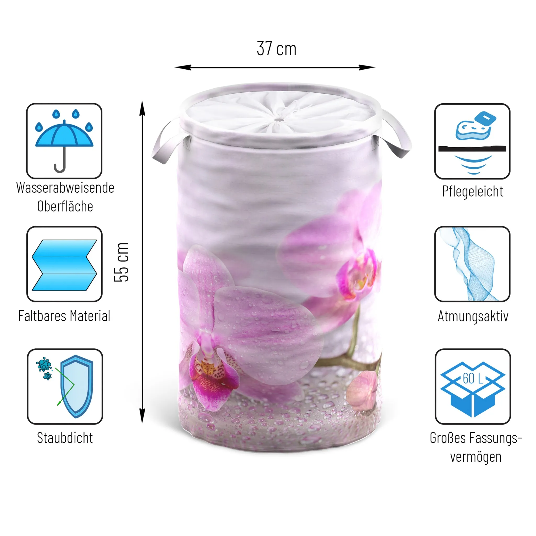 Корзина для белья объемом 60 литров предлагает много места для хранения вещей.