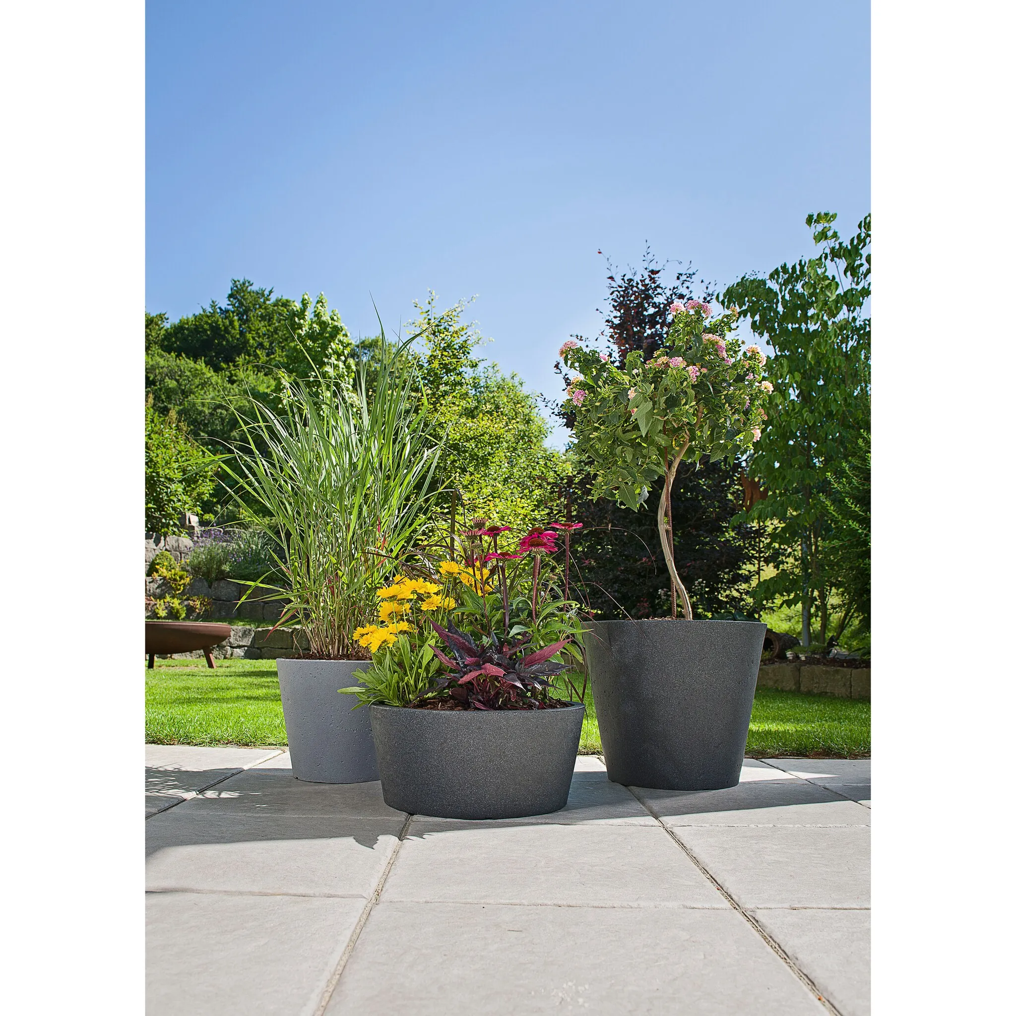 Цветочный горшок слегка конической формы из высококачественного перерабатываемого пластика для использования на открытом воздухе - толстостенный дизайн - аутентичный вид бетона