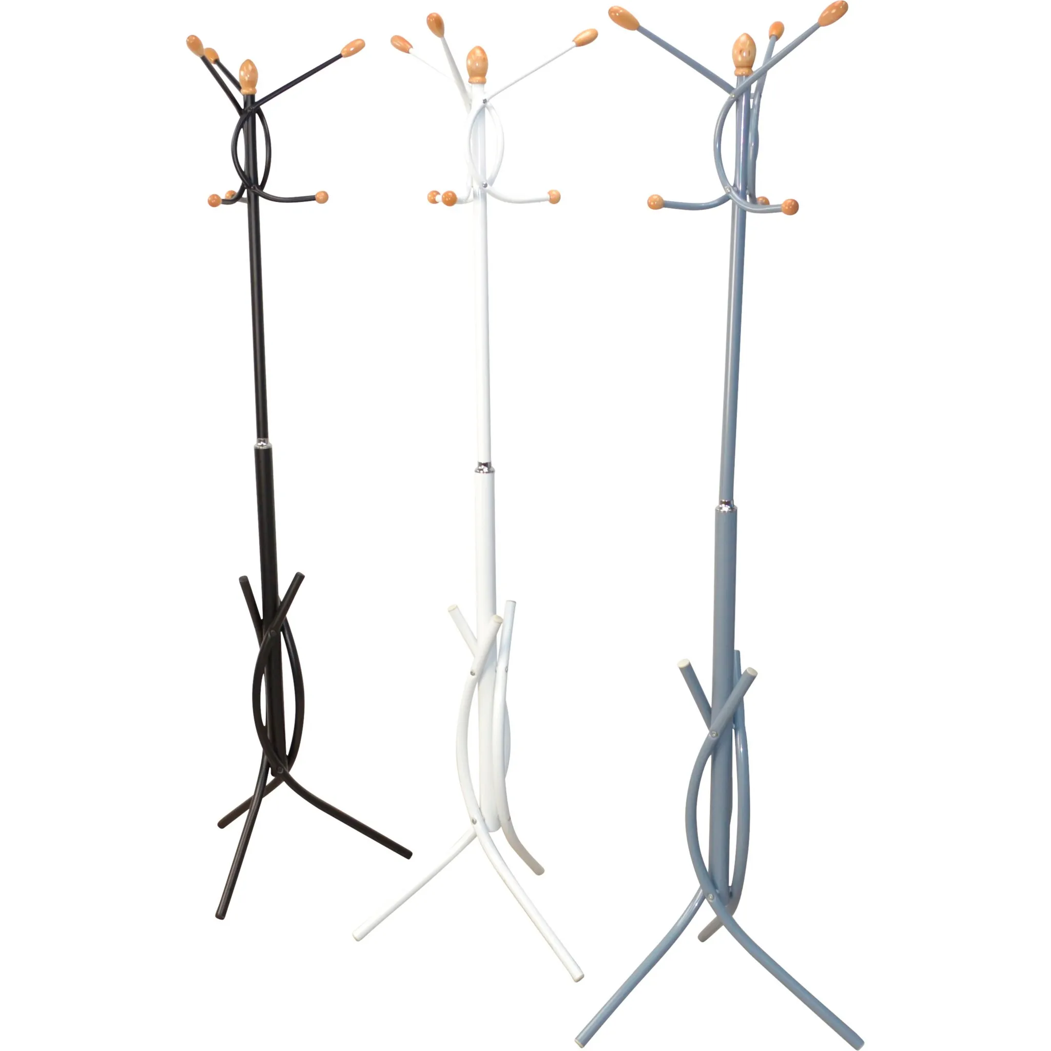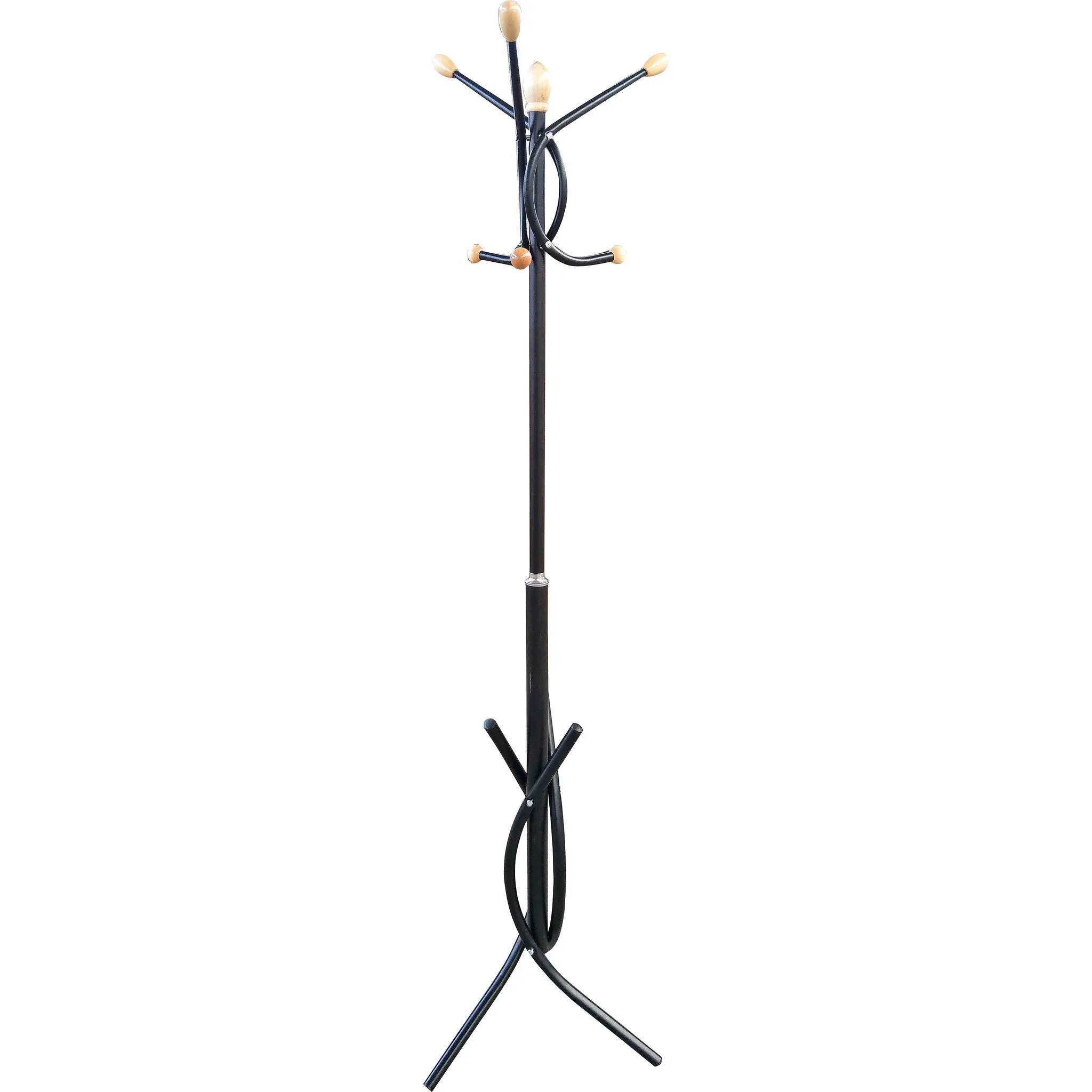 Практичная вешалка из трубчатой ​​стали, с простой в уходе, гладкой поверхностью, с порошковым покрытием. Всего 6 крючков для одежды с пуговицей деревянного цвета обеспечат достаточно места для вашего гардероба.